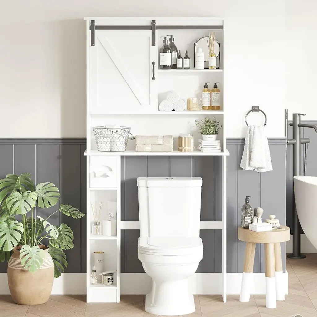 Optimize your small bathroom space with this thoughtfully designed over-the-toilet storage cabinet that combines practicality and style. Featuring a roomy upper compartment with double barn doors and a convenient open cubby below, it helps keep essentials like towels, toilet paper, and toiletries neatly organized without occupying floor space. The adjustable and removable shelves allow you to customize storage according to your needs, whether you’re fitting tall bottles or compact accessories, giving you flexibility to adapt as your storage requirements change. Crafted from high-quality engineered wood, this cabinet offers lasting durability and comes with an anti-tip kit to ensure it stays securely in place, providing safety and peace of mind in busy households. Beyond the bathroom, its versatile design makes it perfect for placement above laundry machines, in hallways, or utility rooms wherever extra storage is needed. Setup is straightforward with clear instructions and all hardware included, while the smooth finish wipes clean easily, helping you maintain a tidy and fresh environment effortlessly. Whether you’re refreshing your bathroom or adding smart storage to tight spaces, this cabinet is an excellent blend of function and convenience that fits seamlessly into everyday life.
