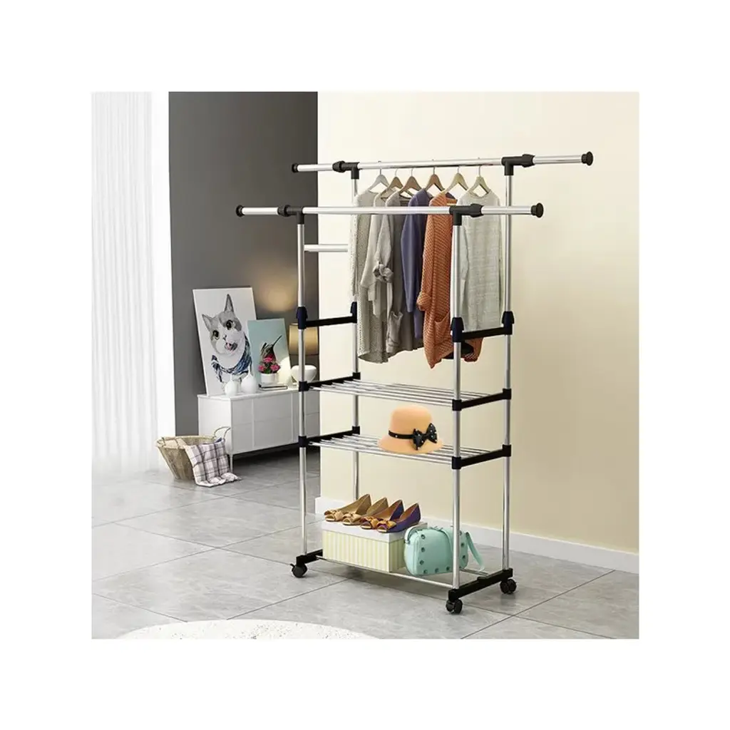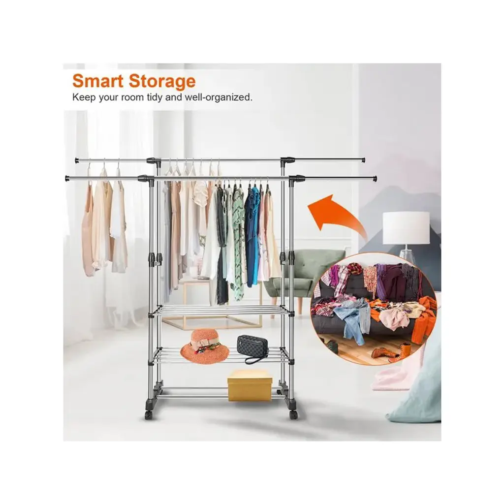 Garment Hanging Rack Extendable Clothing Hanging Rail Organizer With Rolling Wheels Hold Up To 77lbs Max Load