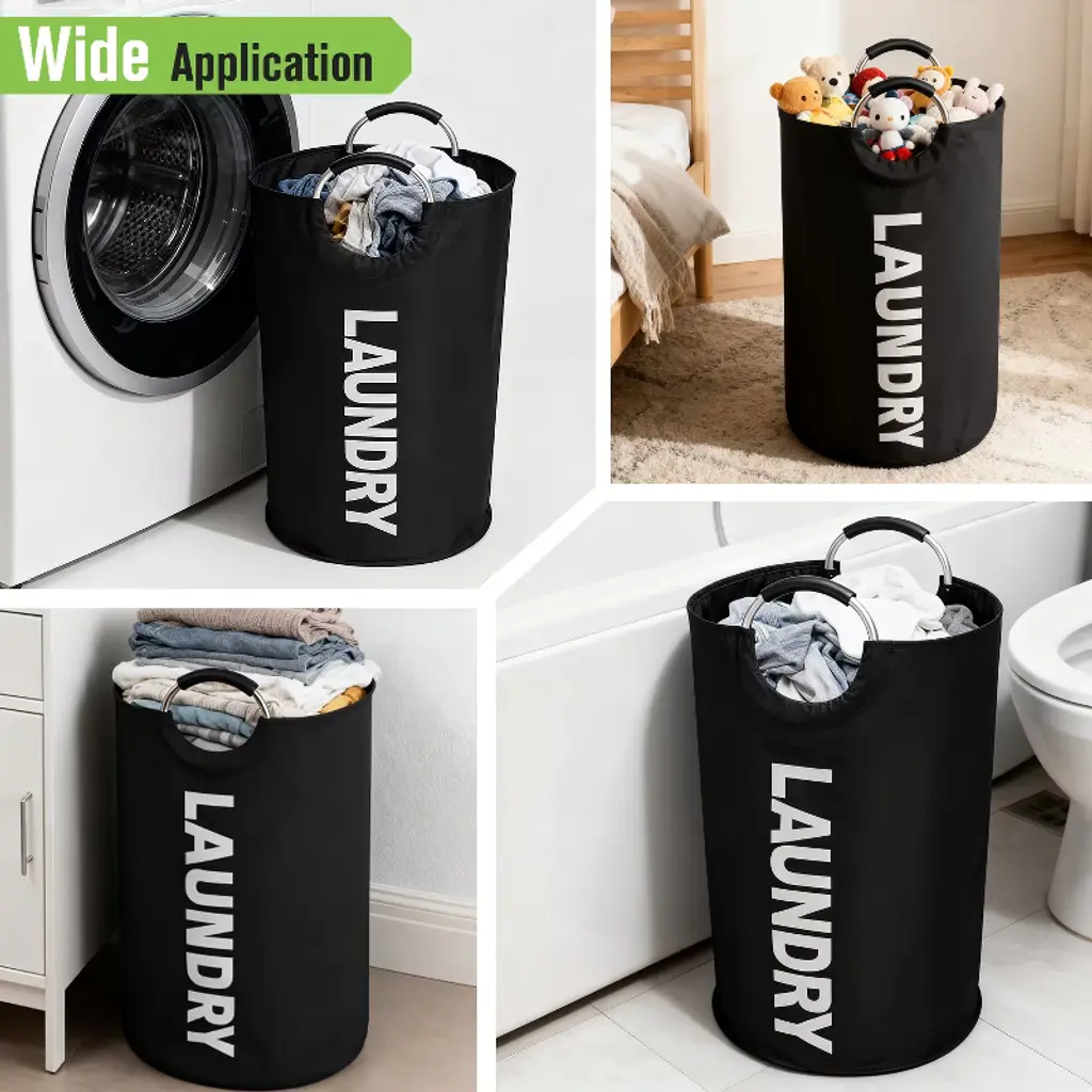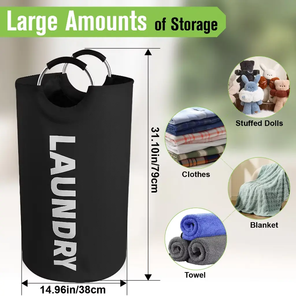 Garnen 90l Collapsible Laundry Basket Bag, Foldable Laundry Hamper Basket, Dirty Clothes Hamper Organizer Bin With Handle For Kids Dorm Room, Black