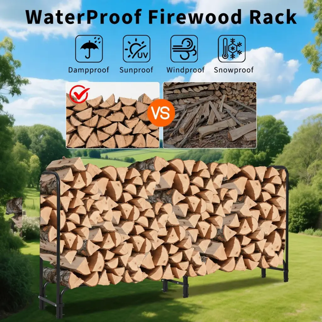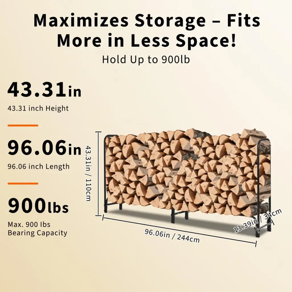 Gustowave Firewood Rack 8 Ft Outdoor & Indoor Log Holder Heavy Duty Wood Organizer Iron Mesh Storage For Fireplace, Patio, Durable Wood Stacker