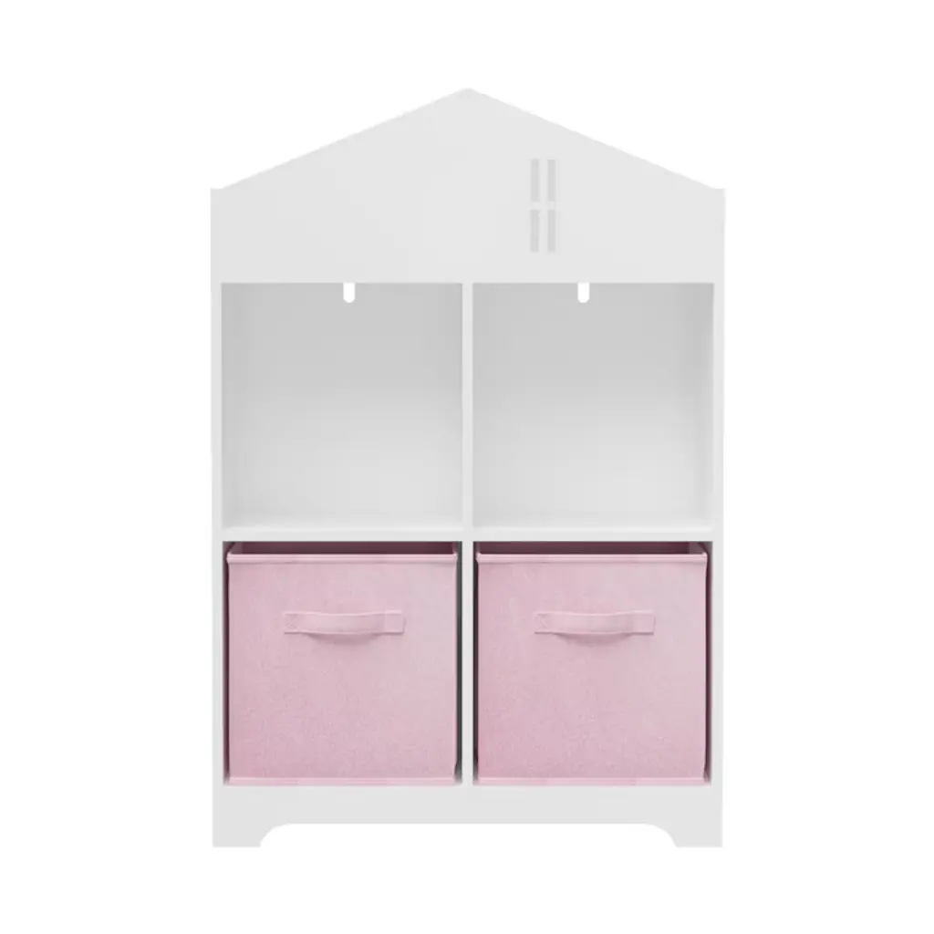 Gustowave Kids Dollhouse Bookcase With Storage, Toddler Bookshelf, 2-tier Storage Display Organizer With 2 Collapsible Fabric Drawers,pink