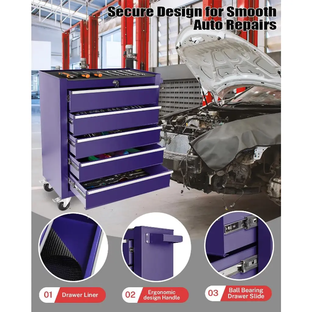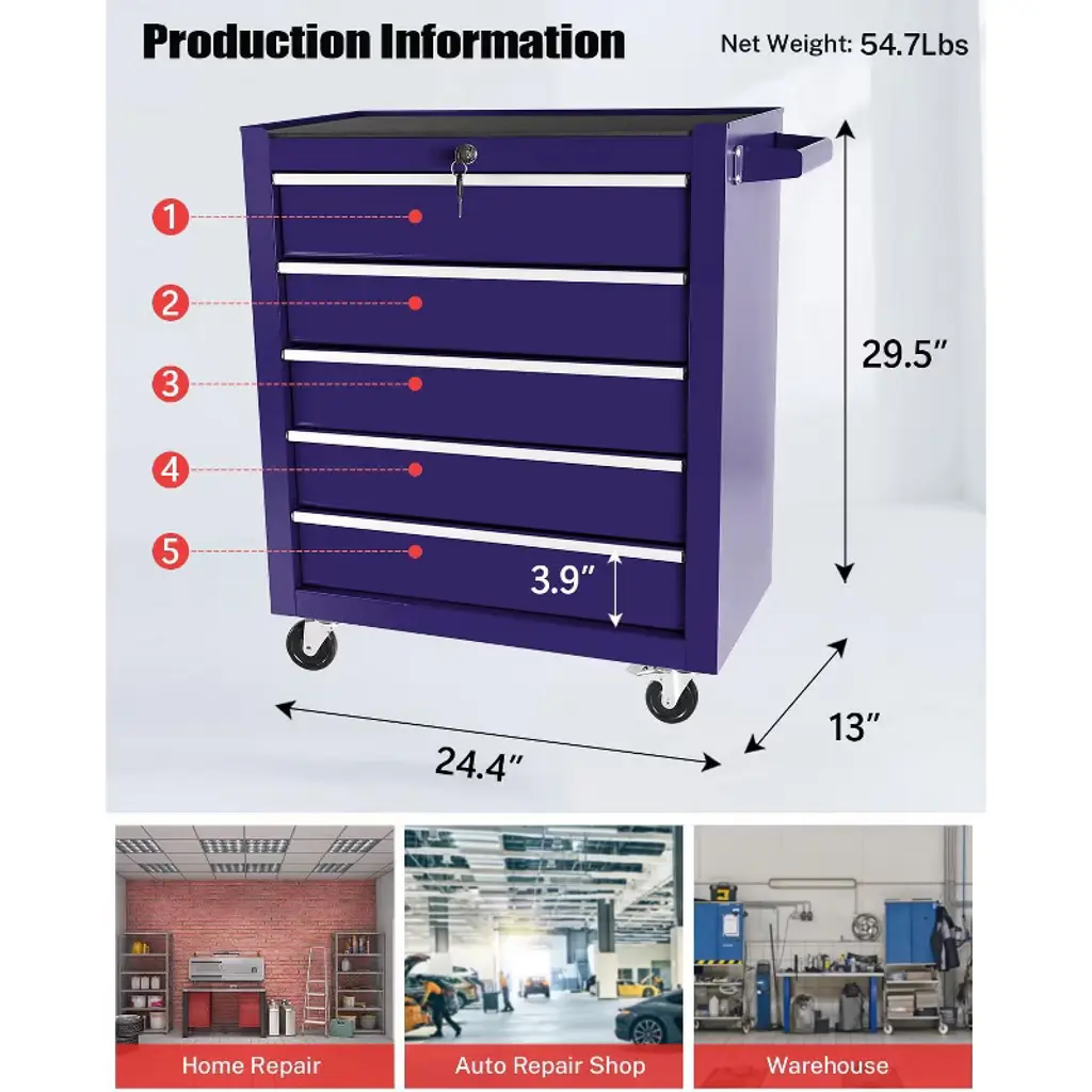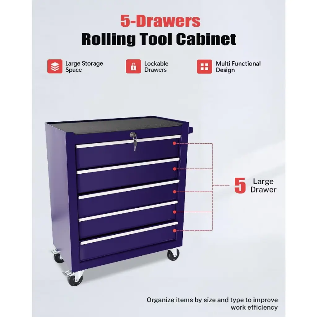 Gustowave Rolling Tool Chest With 5 Drawers & Wheels, Portable Rolling Tool Box On Wheels, Tool Chest Organizer For Garage, Workshop, Blue