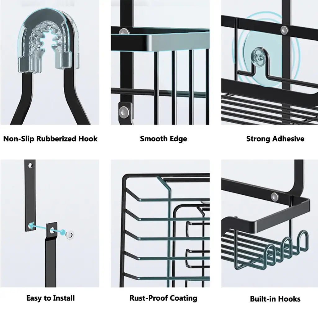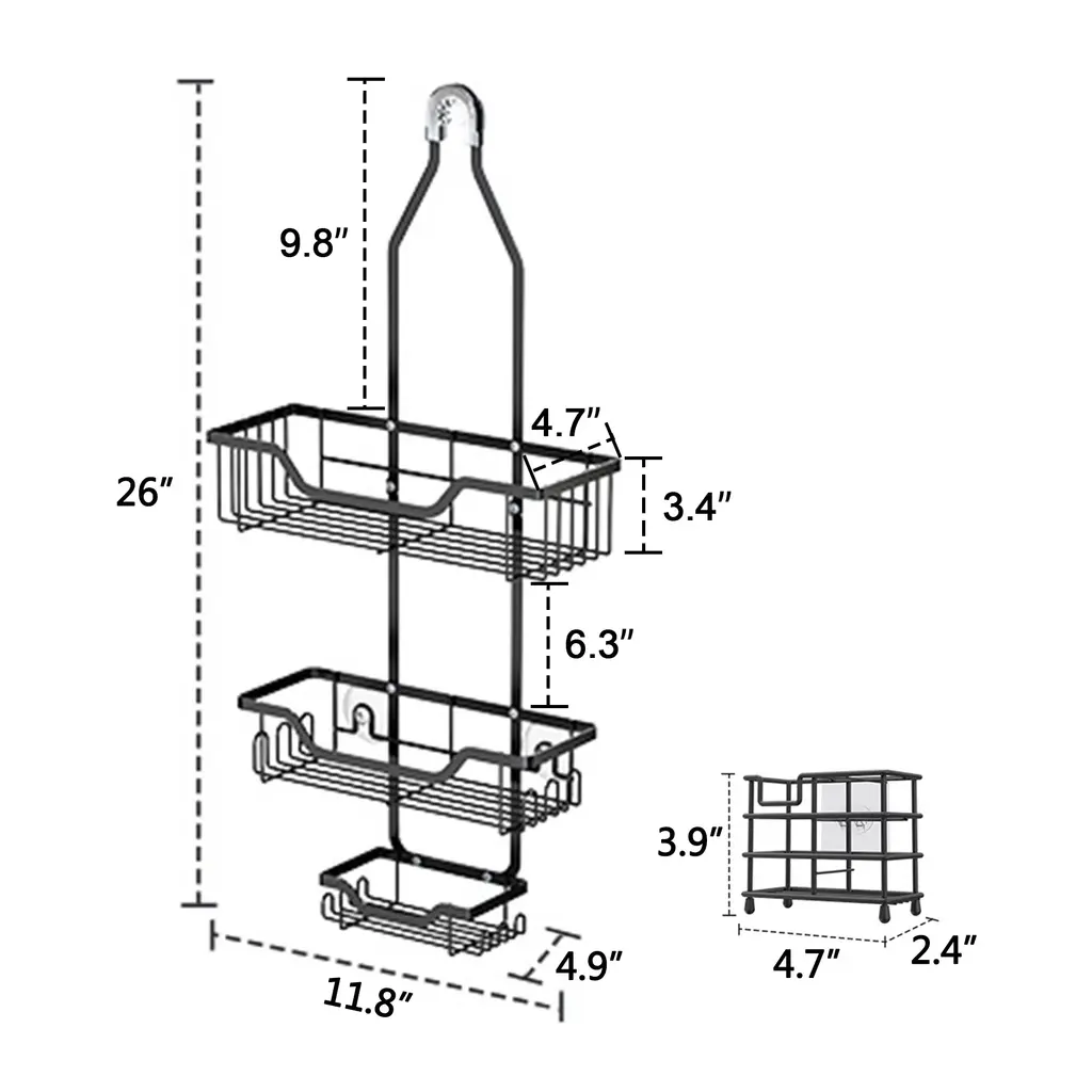 A nice shower organizer reduces clutter in the bathroom while keeping personal care items within reach. This hanging organizer offers lots of room and a simple yet sleek design. Made of rust-resistant metal, the shower caddy can stand up to moisture and humidity. It consists of wire metal racks plus a soap tray/basket, providing plenty of storage space for your essentials. There is enough space between each shelf to accommodate taller bottles. Hook designs are ideal for storing razors, sponges, and towels. All of the surfaces have an open-wire design to help water drain away. We Want to Hear From You!Shopping should be happy and satisfying! We want everything to be perfect for you. Should you have any problems with our products or tracking the order, please feel free to contact us through messages or email at cs@wellzone.life We have customer services standing by 24/7.