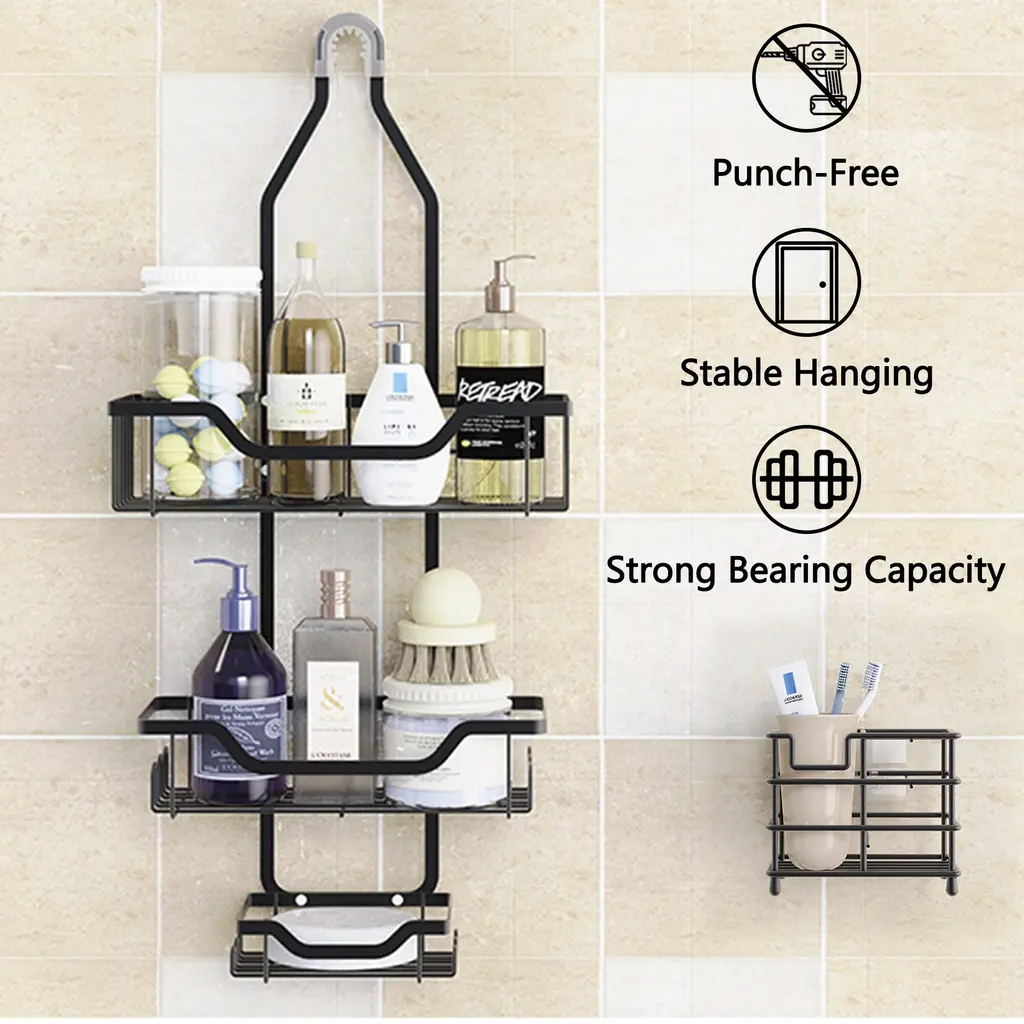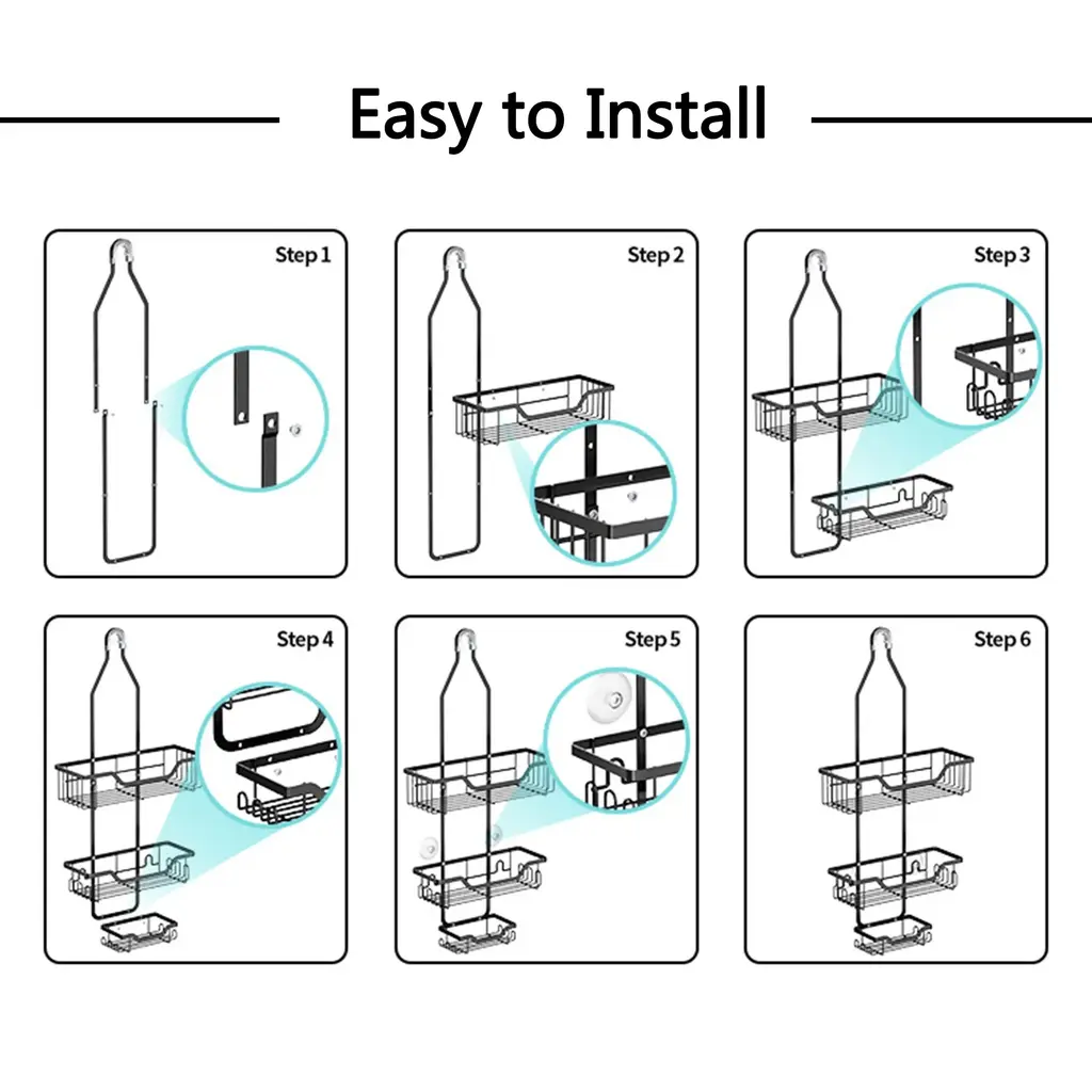 Hanging Shower Caddy Over Showerhead With Hooks Bathroom Shower Organizer Storage Rack - 4-Shelf