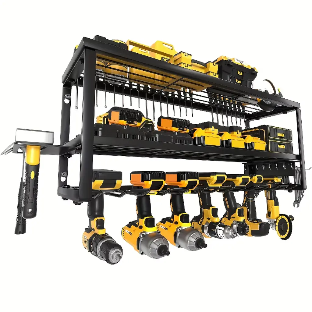 Hausource 12-slot Power Tool Organizer Storage Racks With Pegboard, 4-tier Drill Rack & Power Strip,yellow