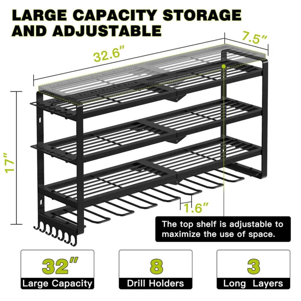 Hausource 4 Layer Power Tool Organizer With 8 Drill Holder Tool Storage Rack Gift For Men, Black