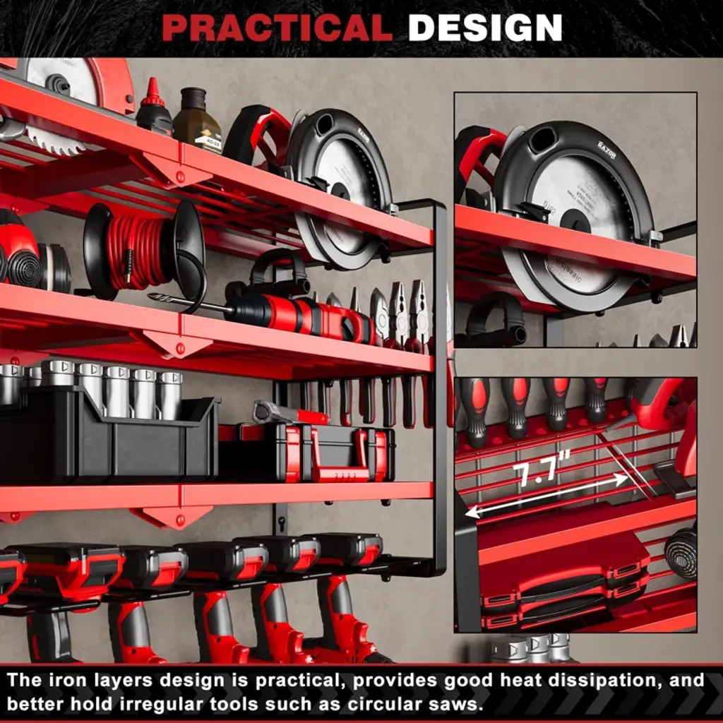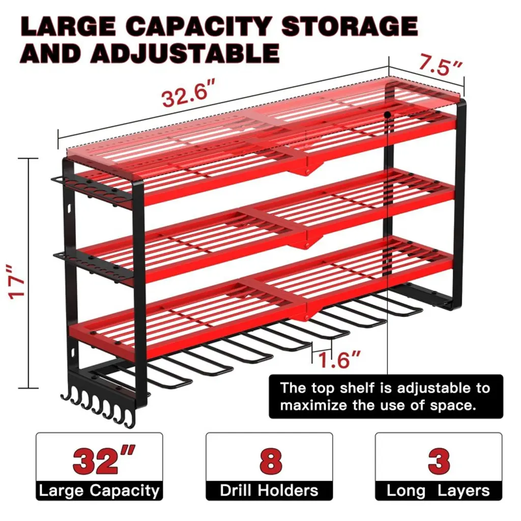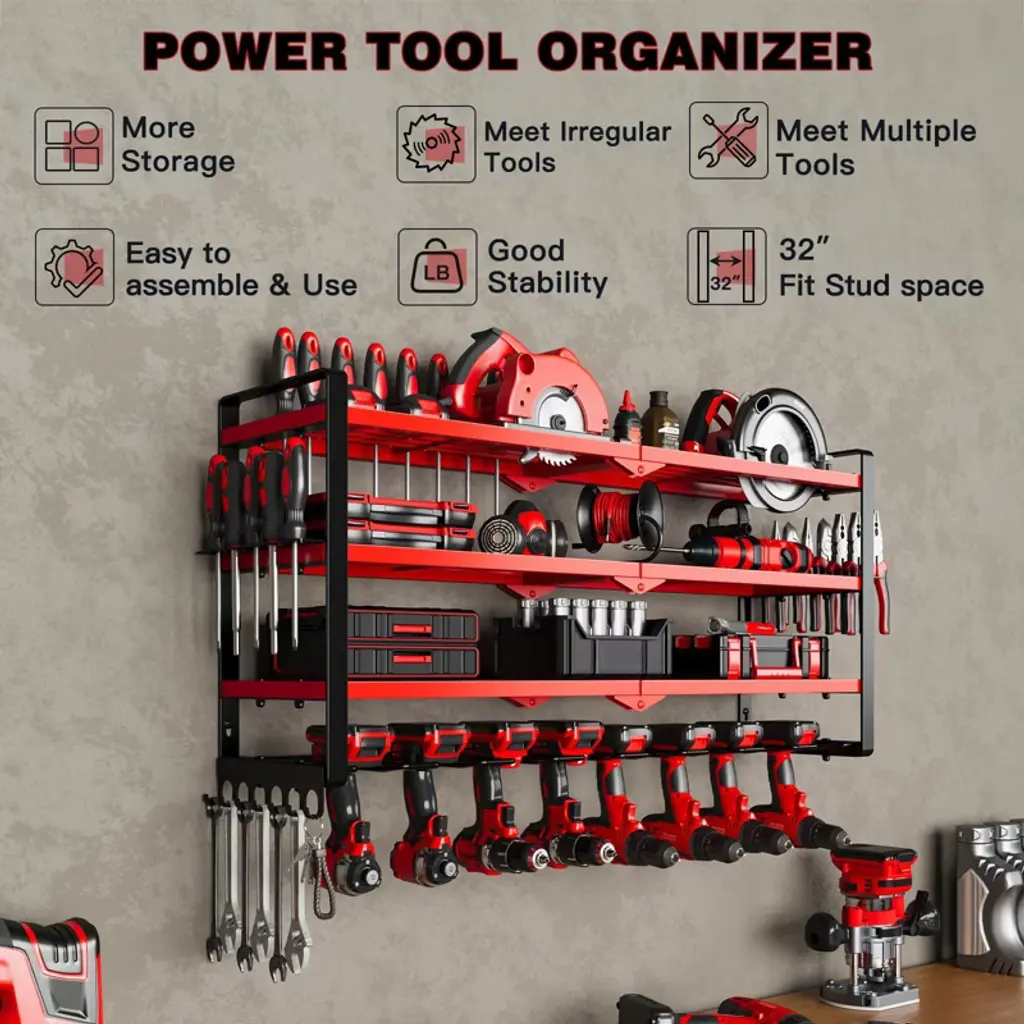 Hausource 4 Layer Power Tool Organizer With 8 Drill Holder Tool Storage Rack Gift For Men, Red