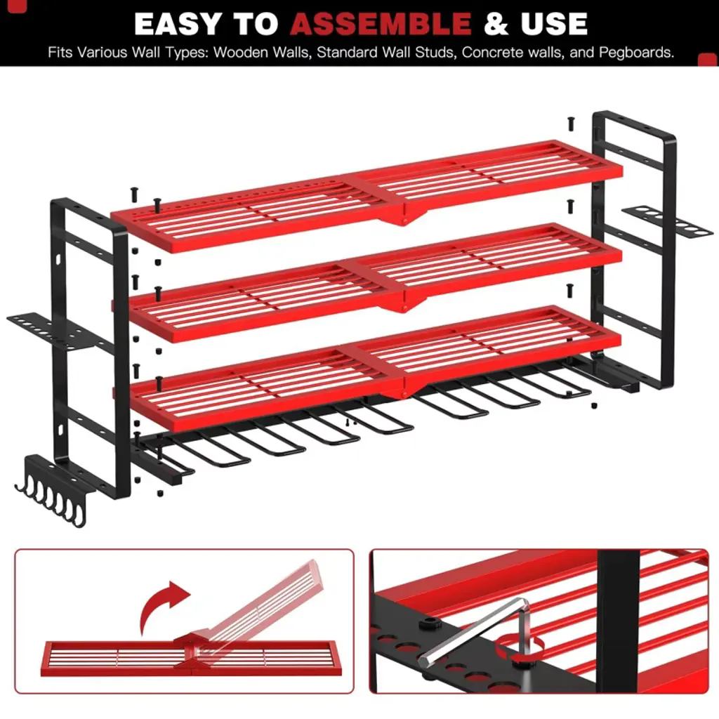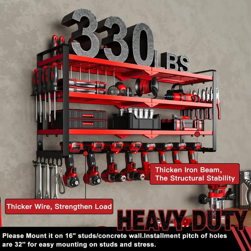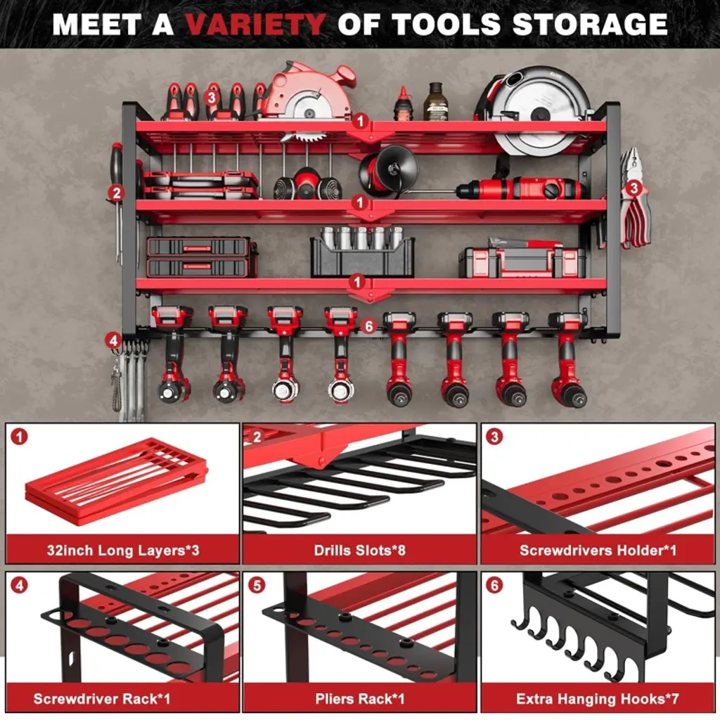 Hausource 4 Layer Power Tool Organizer With 8 Drill Holder Tool Storage Rack Gift For Men, Red