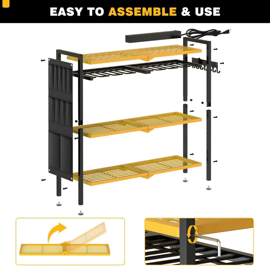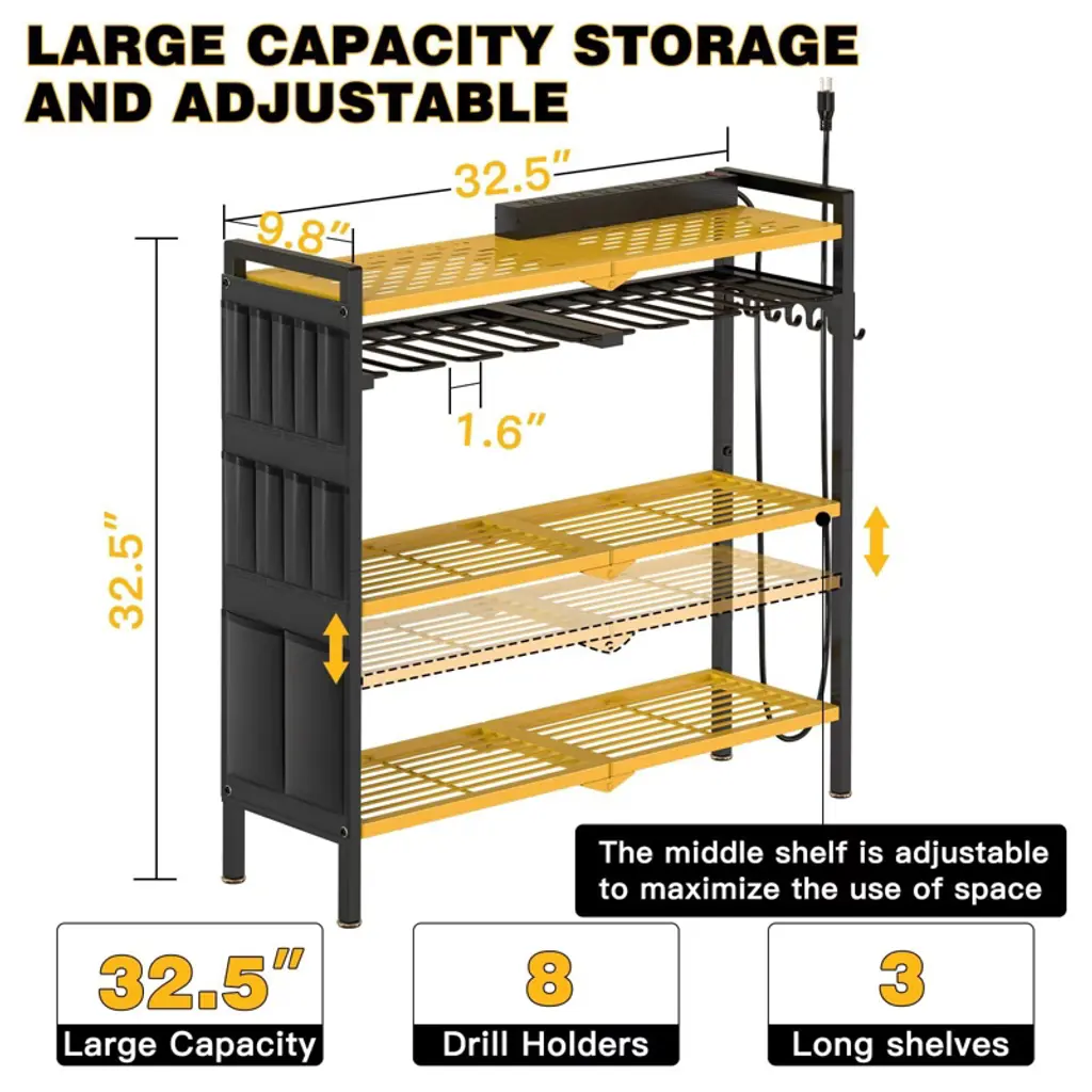The Hausource Standing Power Tool Organizer keeps your workspace efficient and clutter-free. With 8 drill slots, adjustable shelves, and side pockets, it offers smart storage for tools of all sizes. An 8-outlet power strip allows you to charge everything in one place, while the freestanding design saves wall space. Built with durability in mind, it's ideal for garages, workshops, or sheds. This heavy-duty organizer also makes a thoughtful and practical gift for any tool-loving husband or DIY enthusiast.