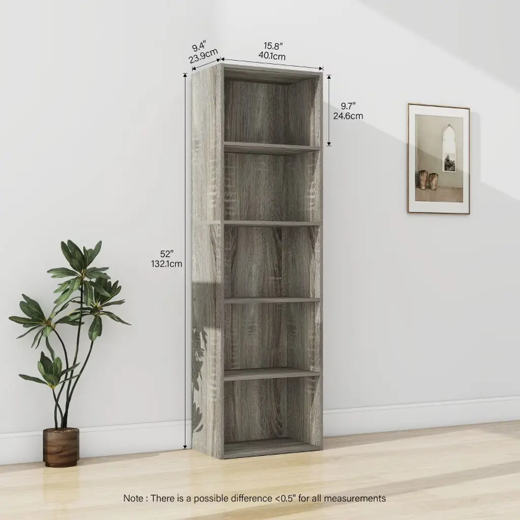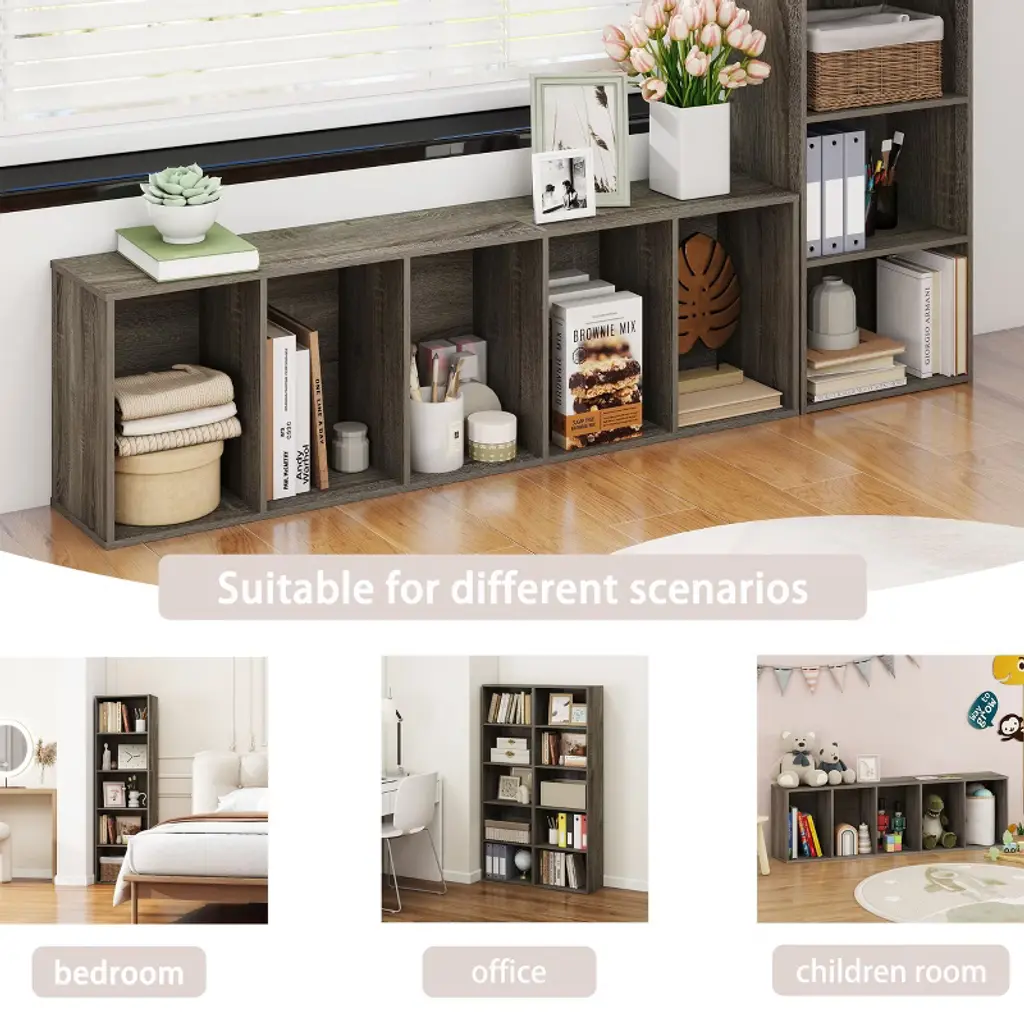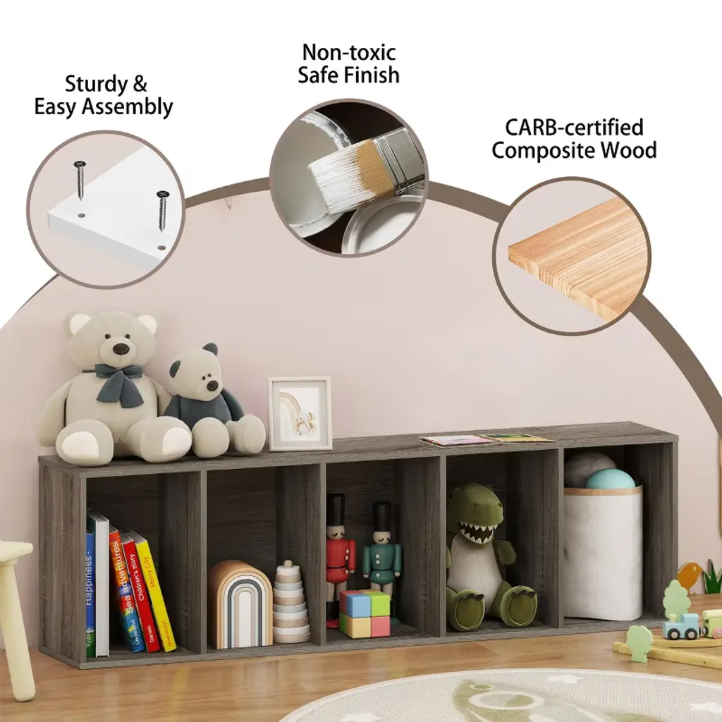 Homlux 5 Cube Decorative Open Bookshelf Kids Toy Storage Organizer Horizontal Vertical, Gray