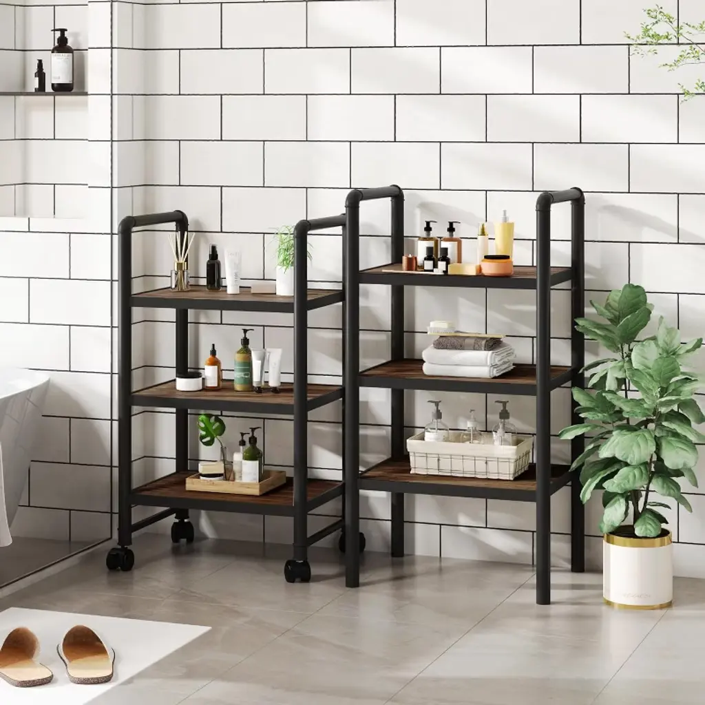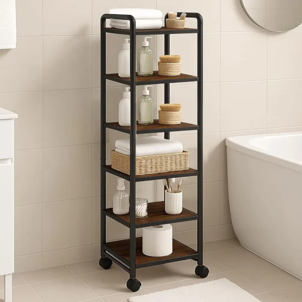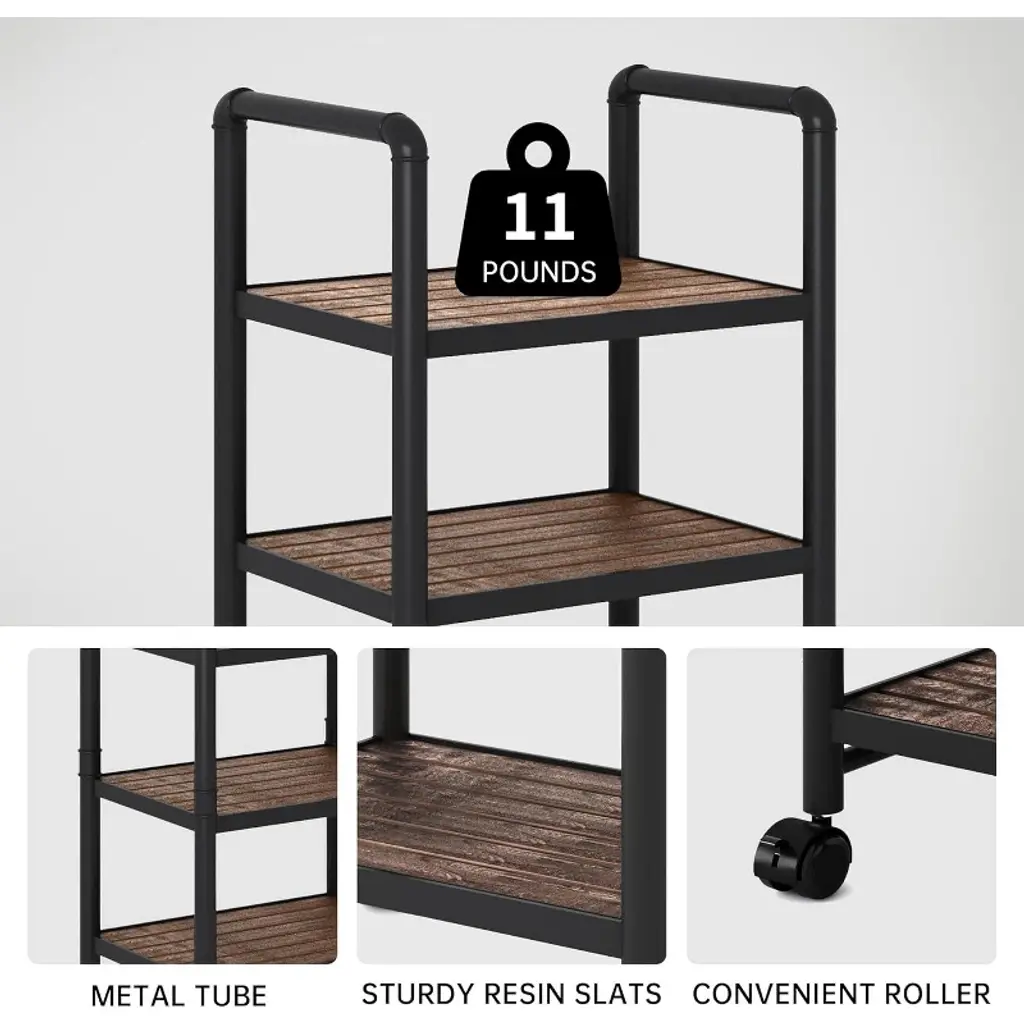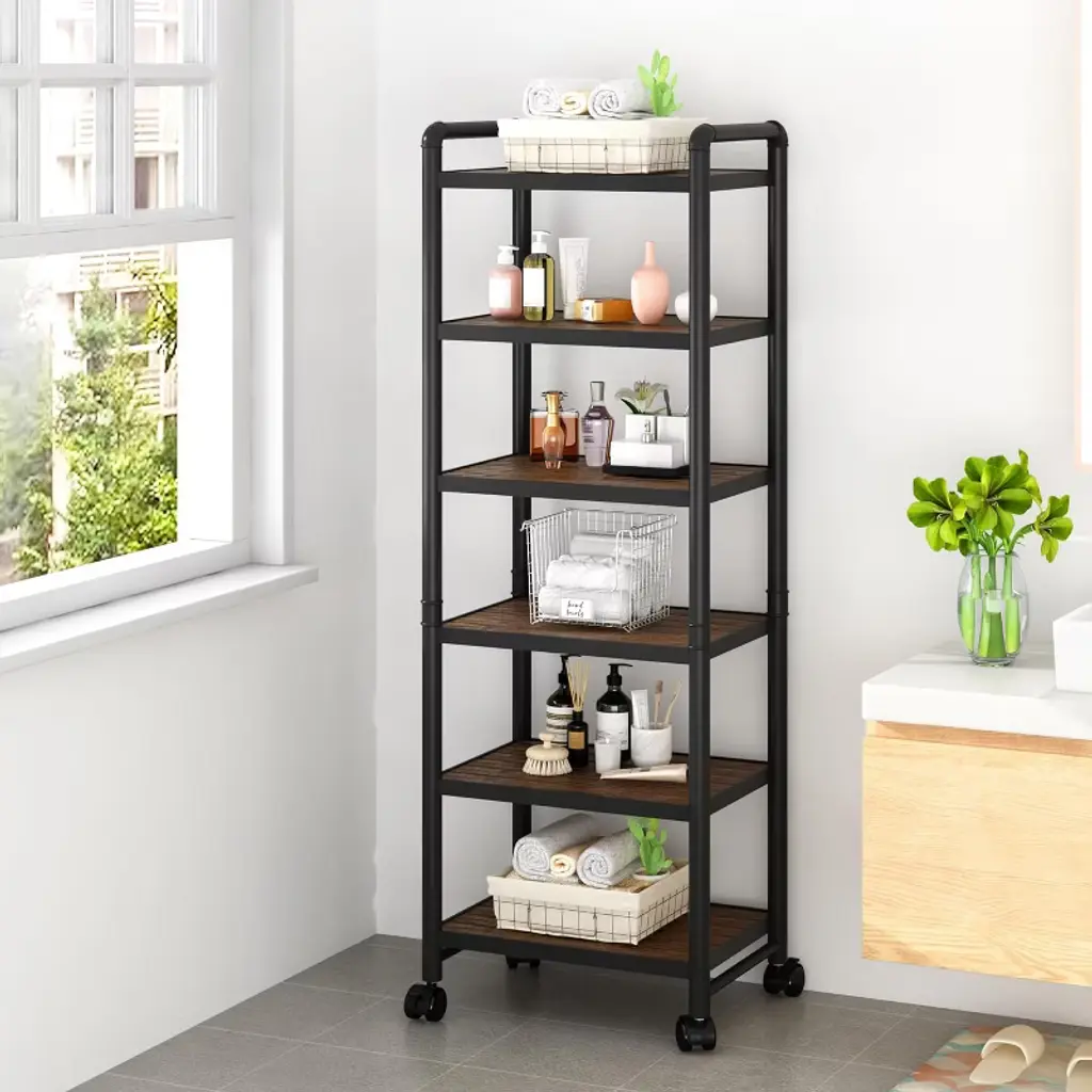6-Tier Narrow Rolling Shelves: Industrial Style & Versatility Maximize storage with these sleek industrial shelves, featuring a black galvanized pipe frame and rustic brown wood slats. The 6-tier design (16.14''L x 12.2''W x 63.5''H) offers vertical space-saving storage, easily split into smaller units for flexible use in kitchens, bathrooms, garages, or balconies. Sturdy resin slats and galvanized steel tubing (with rust-resistant coating) ensure industrial-grade durability, supporting heavy items with confidence. Four 360° lockable wheels allow smooth mobility or stable positioning, while the compact footprint fits tight spaces. Ideal for indoor/outdoor use, this versatile rack combines style and functionality—perfect for organizing tools, plants, or household essentials. Easy to assemble without complex tools, it’s a practical addition to any space. Upgrade your organization—order these rolling shelves today!