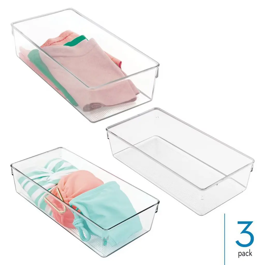 Idesign Plastic Dresser Drawer Organizer For Bedroom - Set Of 3 - Clear