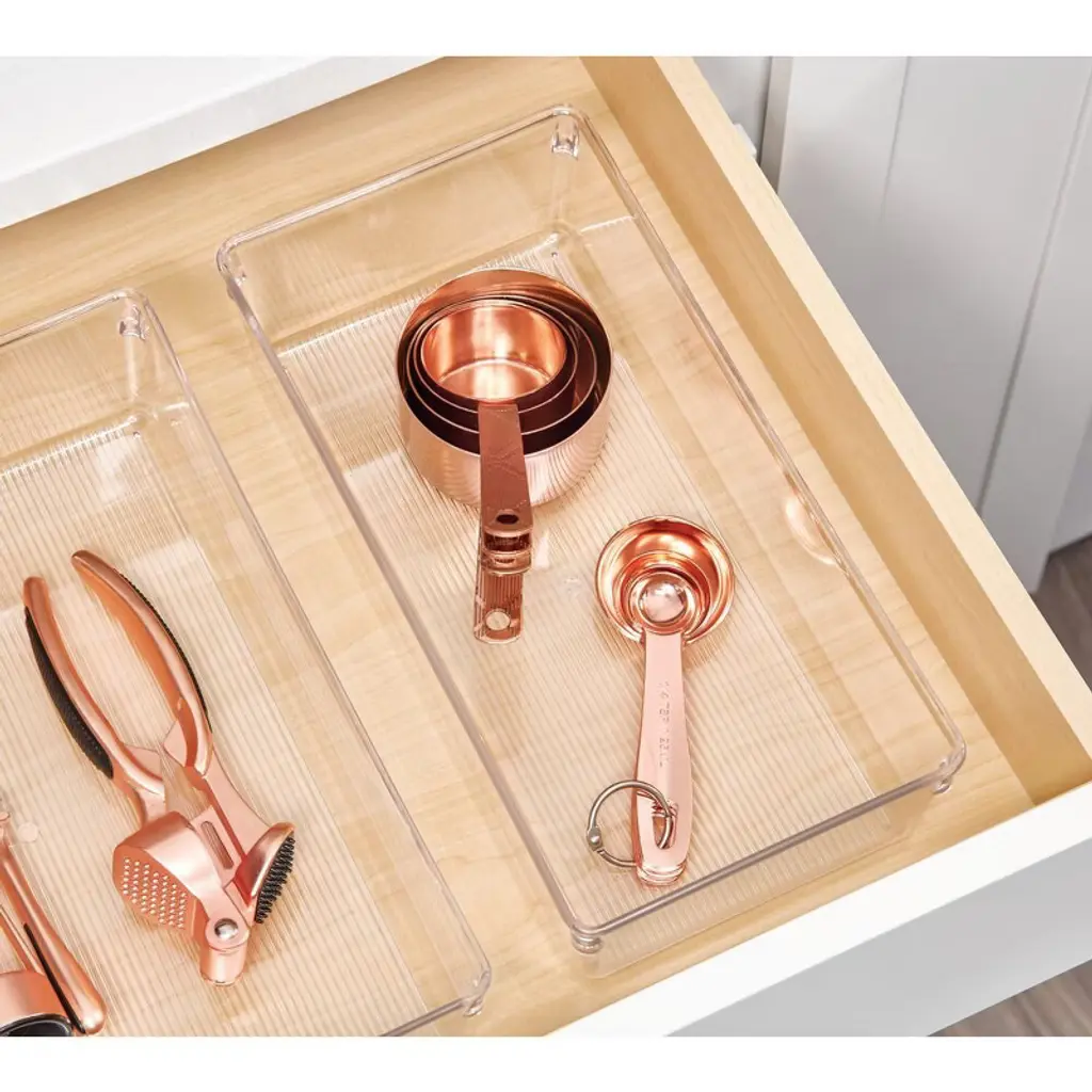 Make everything instantly visible inside cluttered drawers with our iDesign Dresser Drawer Organizers. This versatile catchall creates a home for your most reached-for essentials, from socks to tank tops, and fits neatly inside any standard-sized or deep drawer. Its straight sides slide flush against other organizers so there are no gaps when used in conjunction with other drawer organizers. For efficiency, use these organizers in multiples to tackle disarray in any bathroom, kitchen, or desk drawer. With iDesign, you can live simply every day.