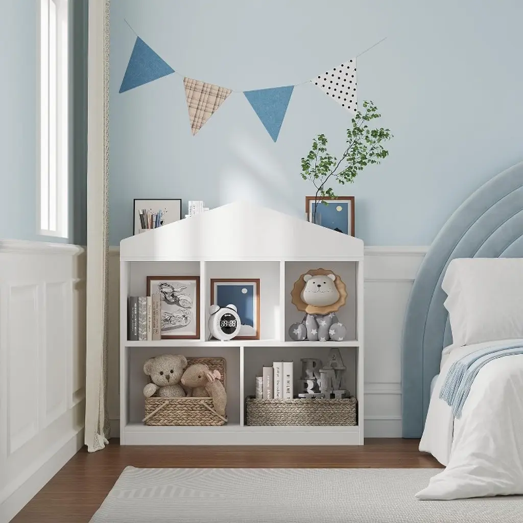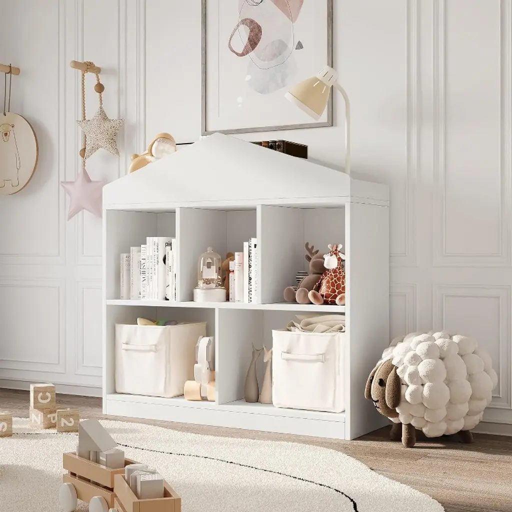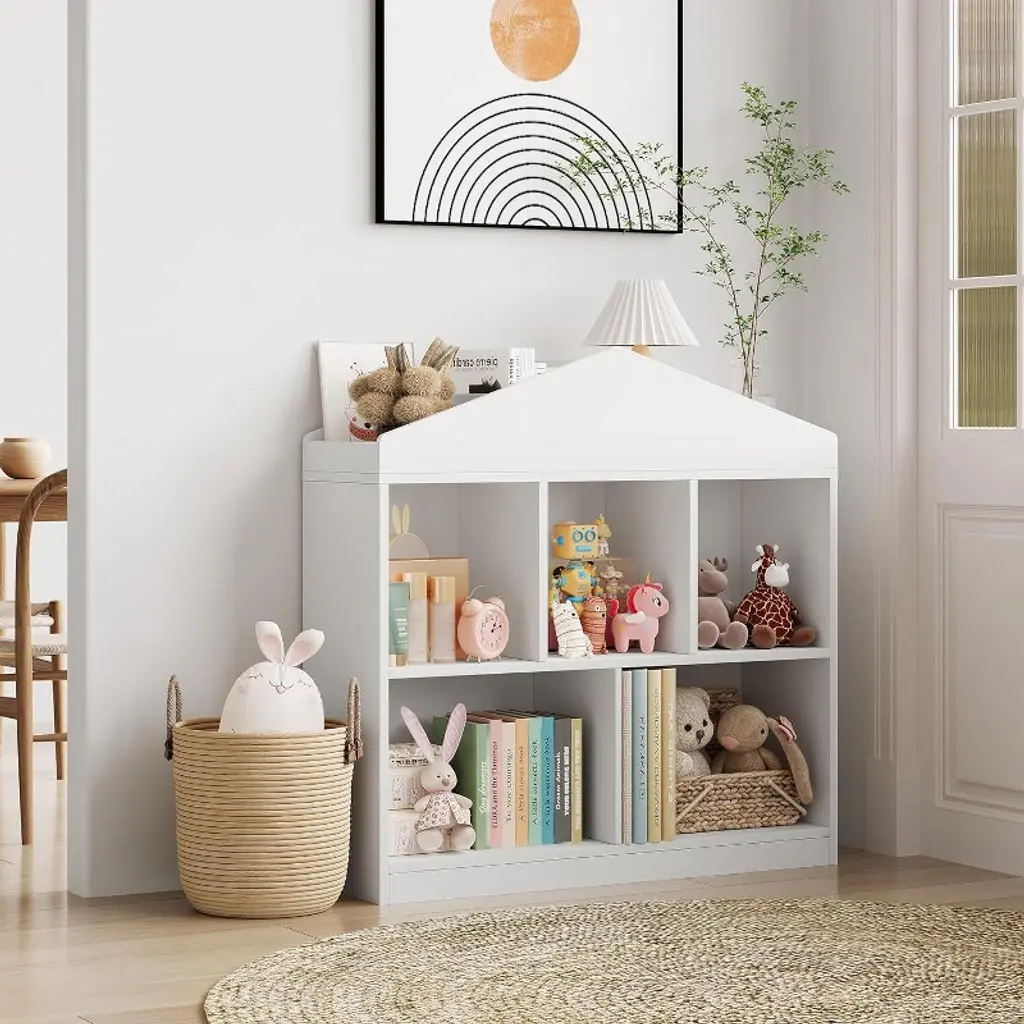Jojoka Kids Bookshelf White Toy Storage Organizer 5-cubby Bookcase,white