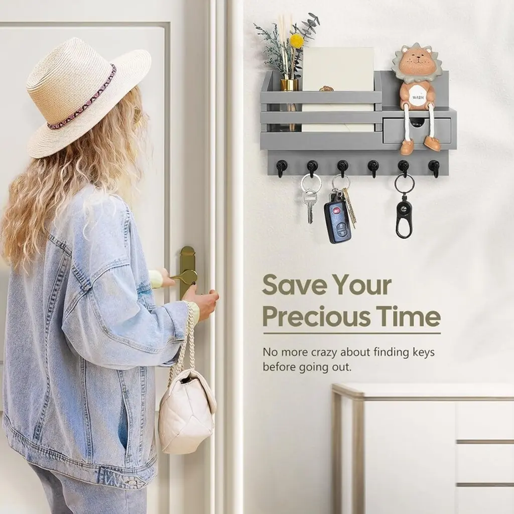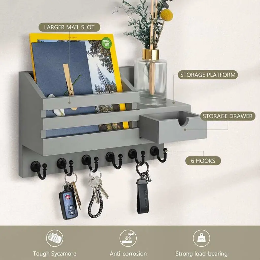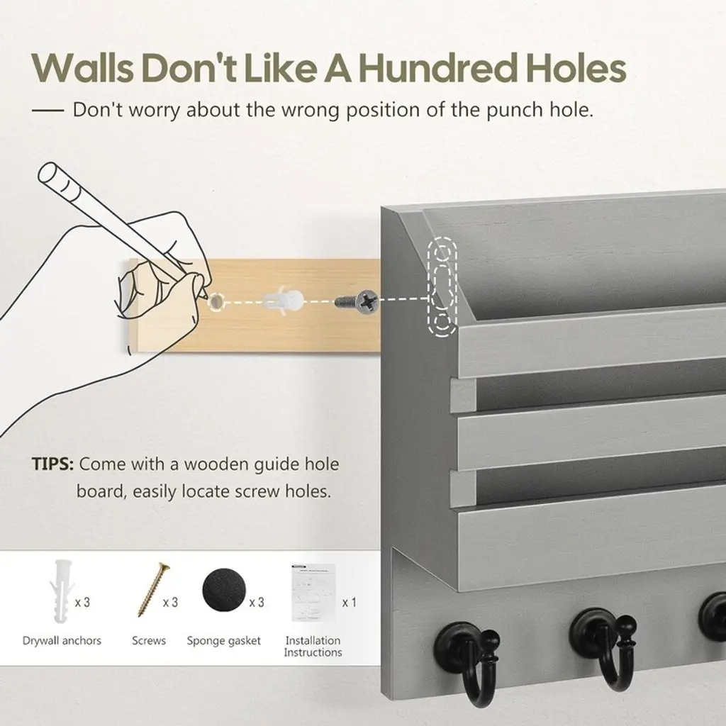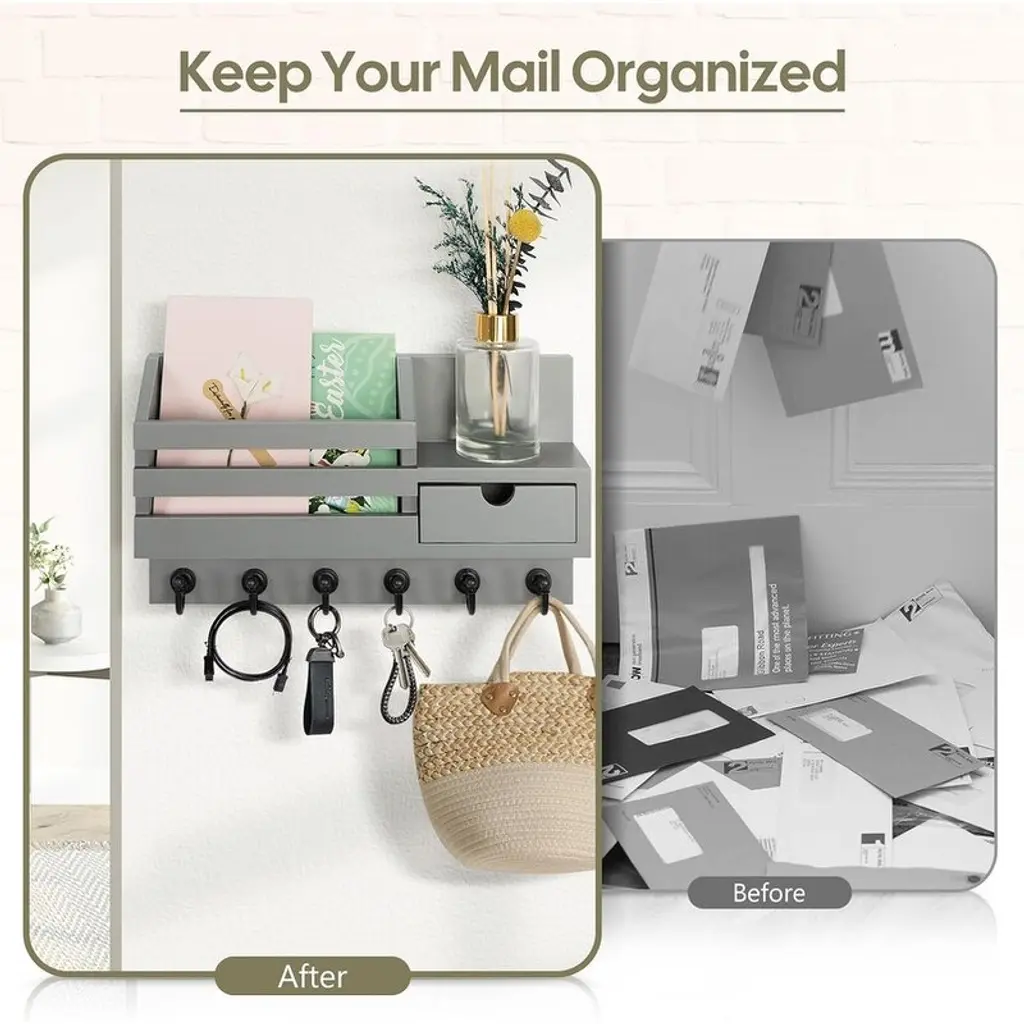 Key And Mail Holder For Wall, Mail Organizer Wall Mount - A-Grey