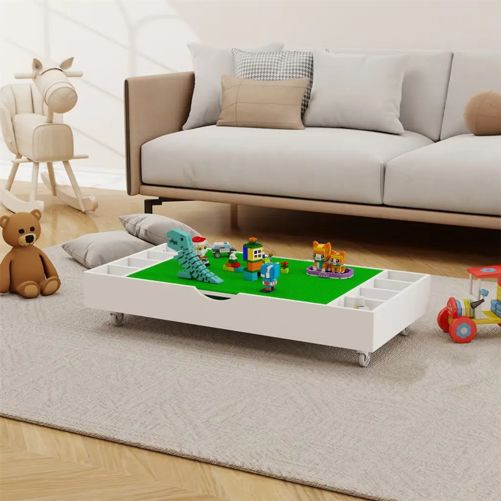 Kid Table, 2 In 1 Rollaway Play Table And Toy Organizer Compatible With Lego, For Storing Under Bed Or Sofa, Game Furniture