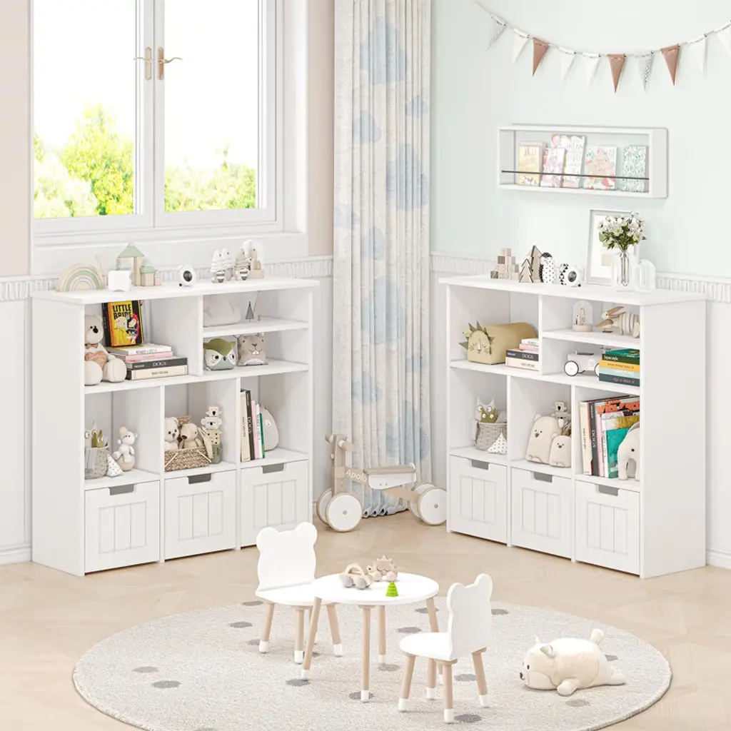 Kids Bookcase Toy Storage Organizer Toy Chest With 3 Movable Drawers & Hidden Wheels Toy Storage Cabinet