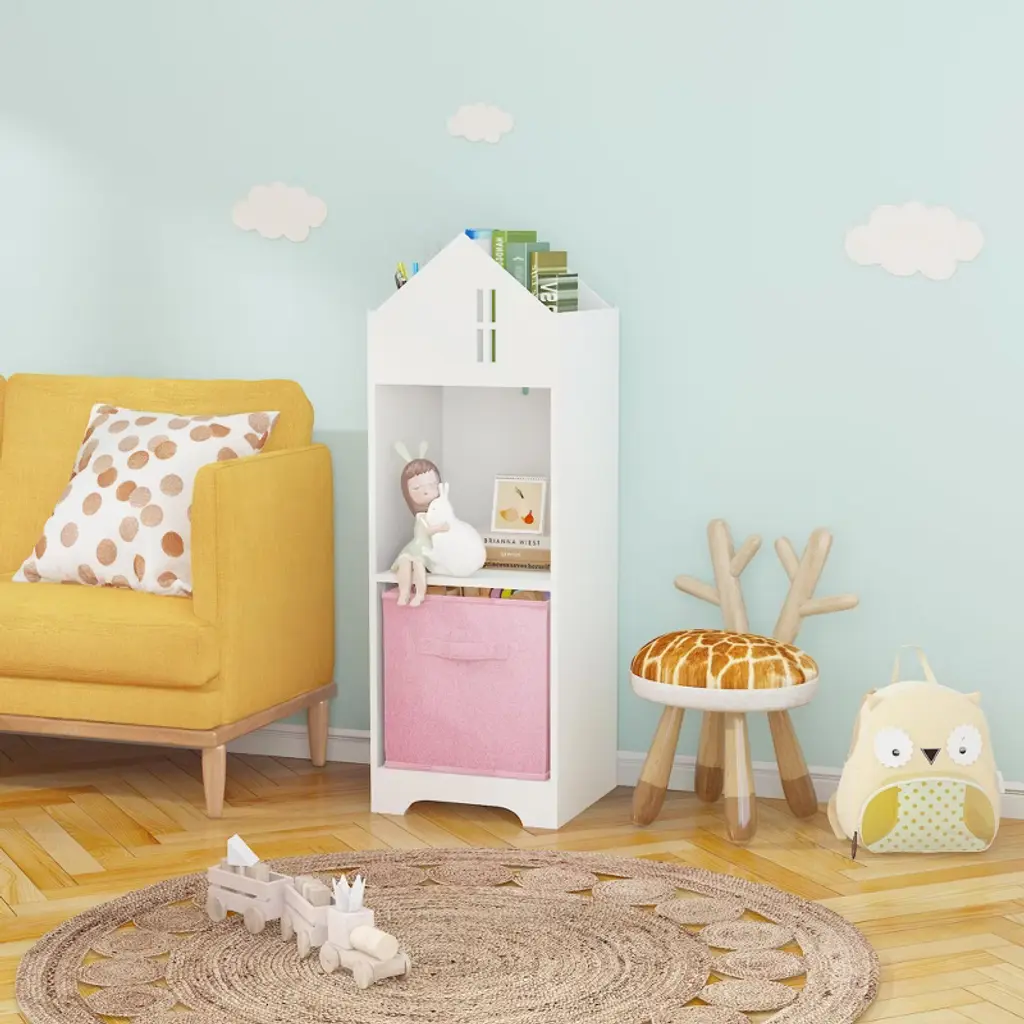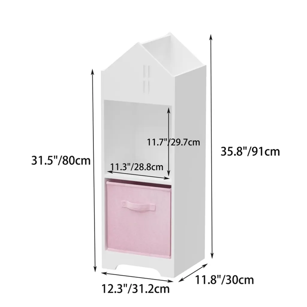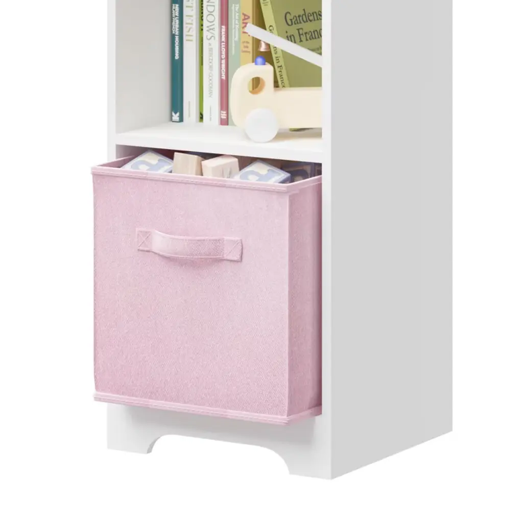 Kids Bookcase With Storage, Bookcase With Bins, Toys & Books Display Organizer For Nursery, Playroom Furniture, White+pink 1 Drawers