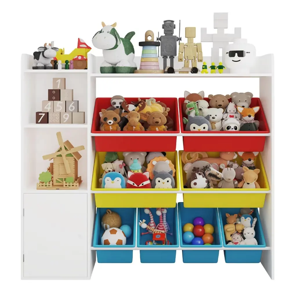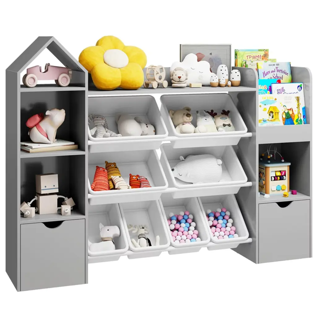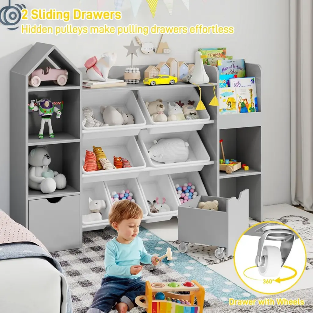 Kids Toy Organizer With Removable Toy Bins & Storage Cubbies, Kids Bookshelf, Grey
