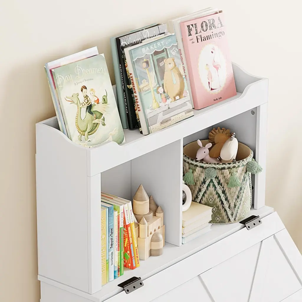 Kids Toy Storage Organizer, Kids Bookshelf And Toy Storage With Flip-top Lid And Cubby
