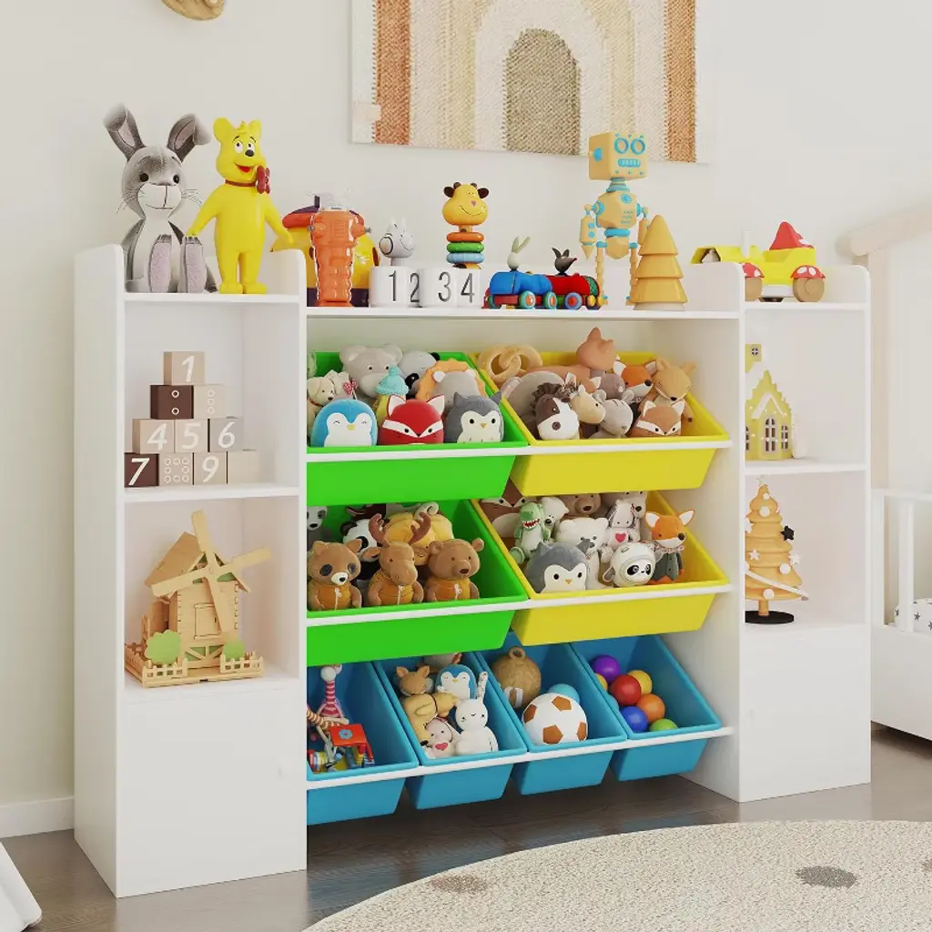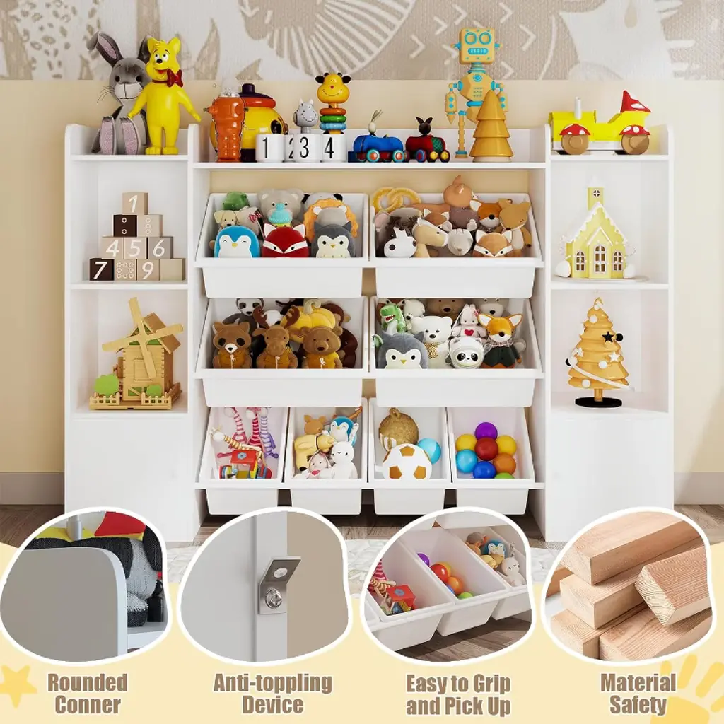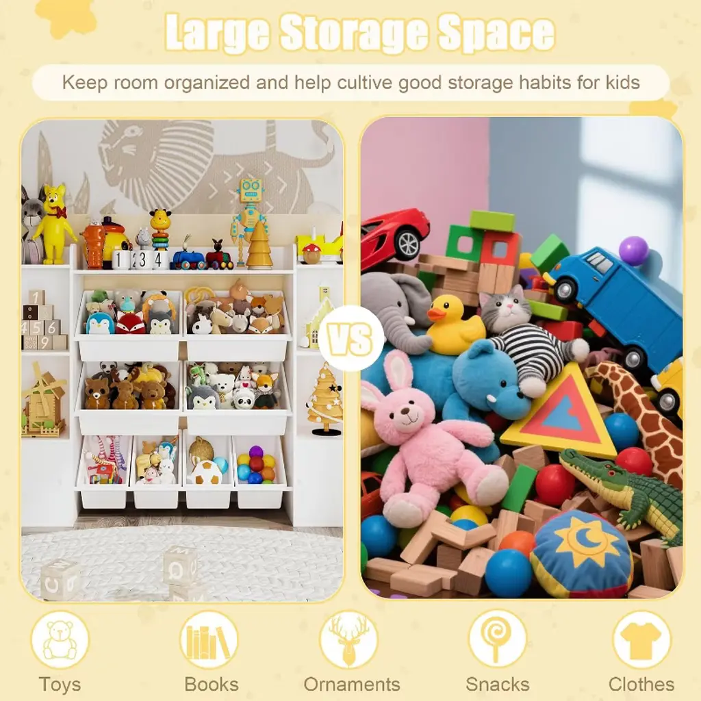 Kids Toy Storage Organizer W/8 Bins, Bookshelf & Cubbies, Multi-colors