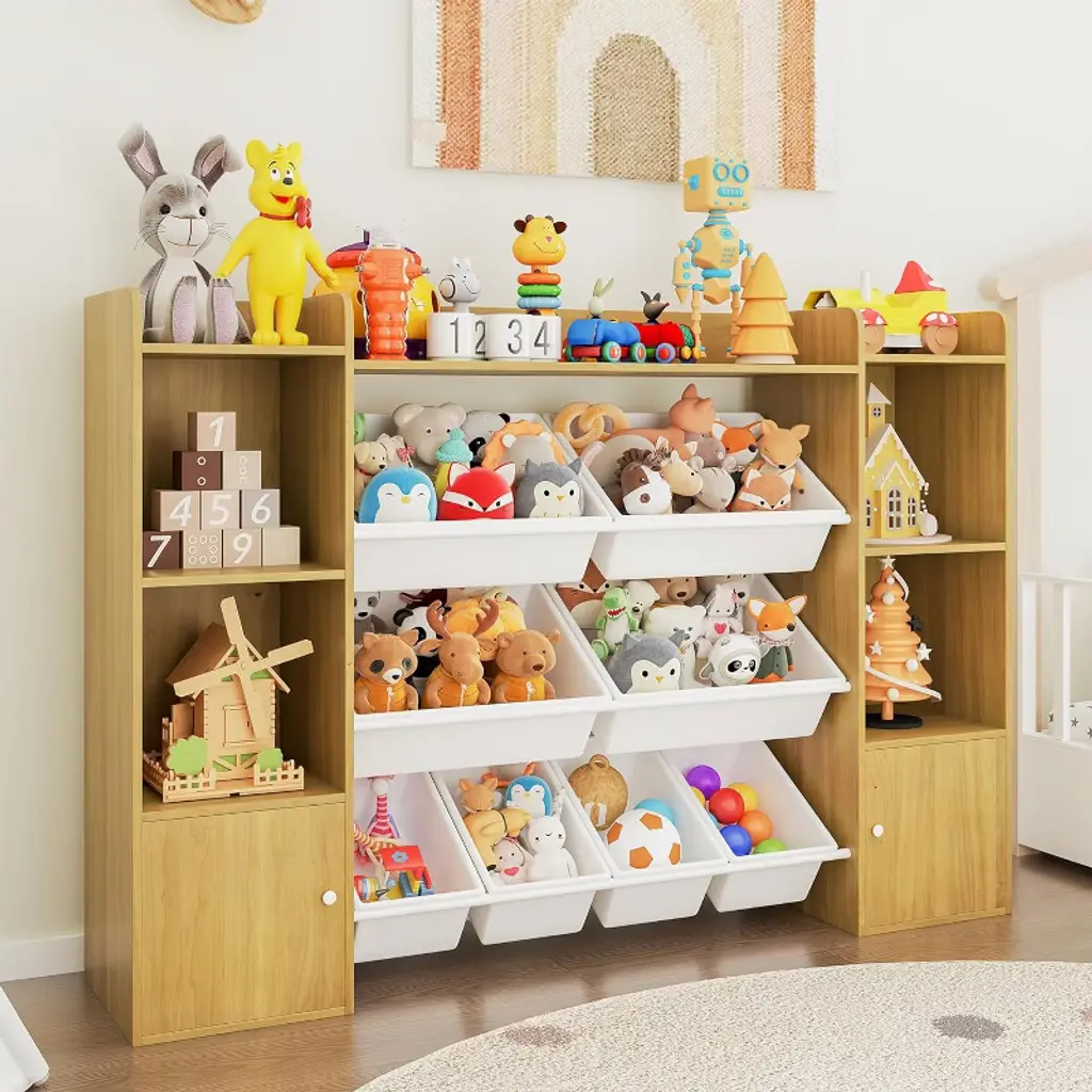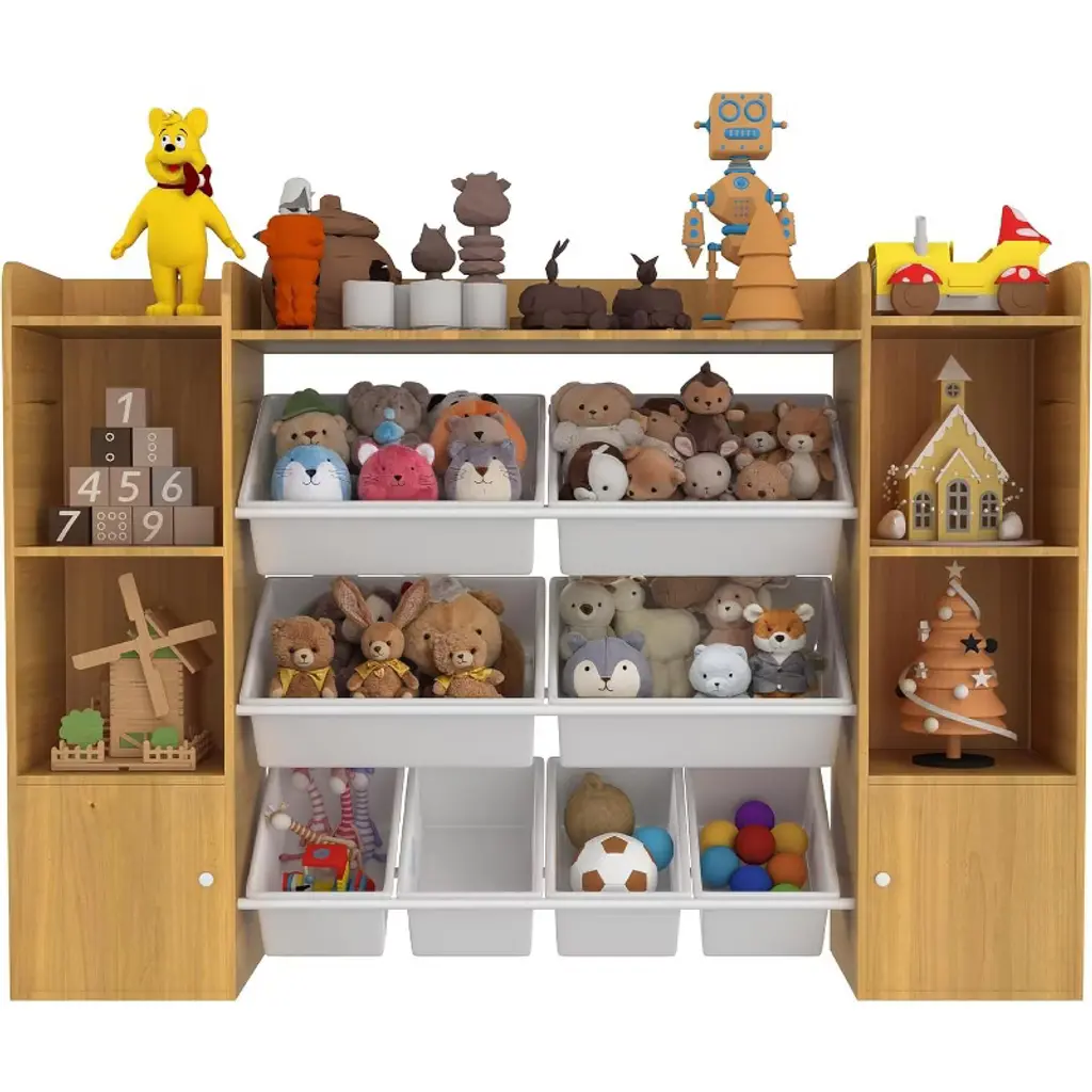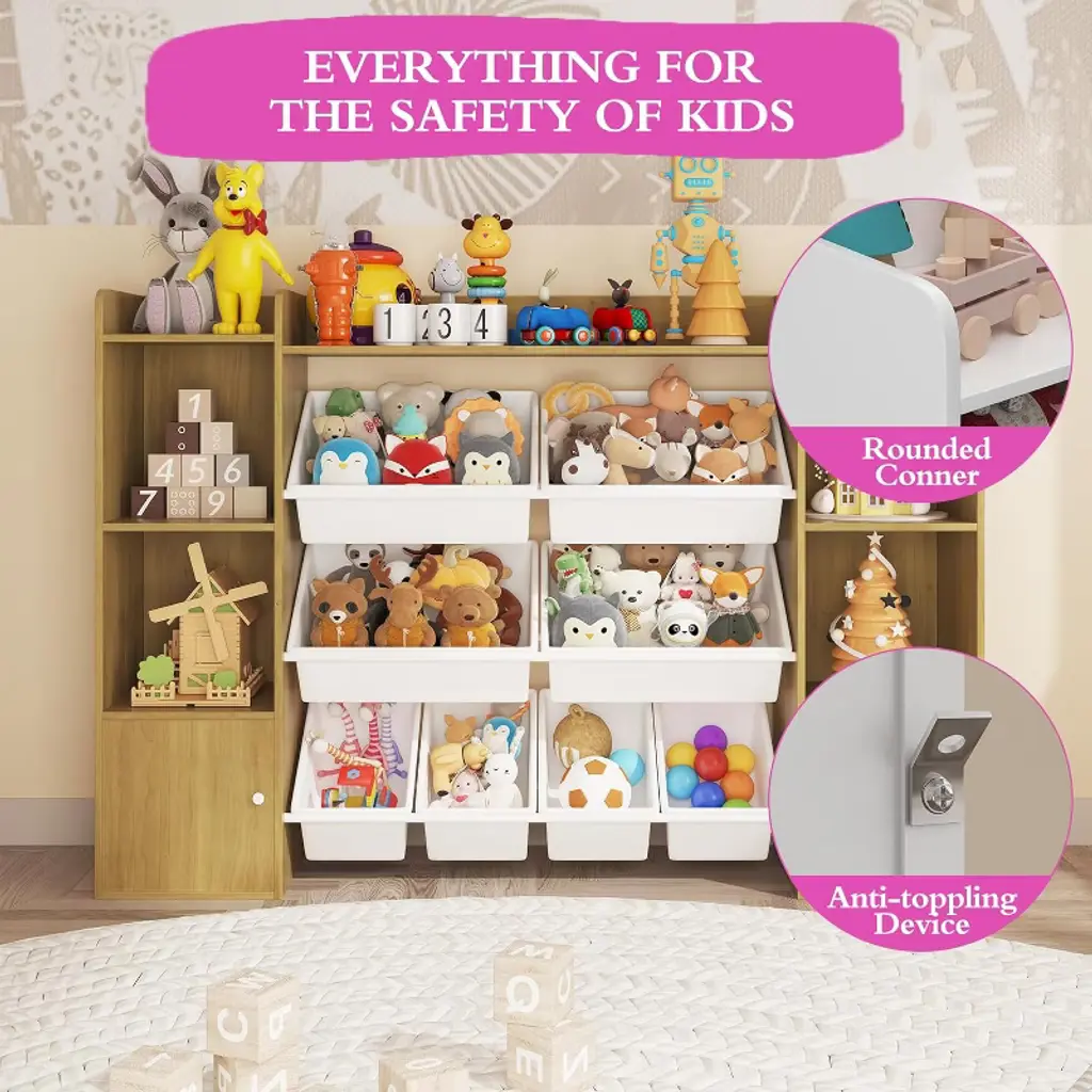 Kids Toy Storage Organizer w/8 Removable Toy Bins, Kid Bookshelf and Toy Storage w/2 Storage Cubbies Playroom Organization and Storage Bins for Playroom, Bedroom, Kids Room, Classroom
