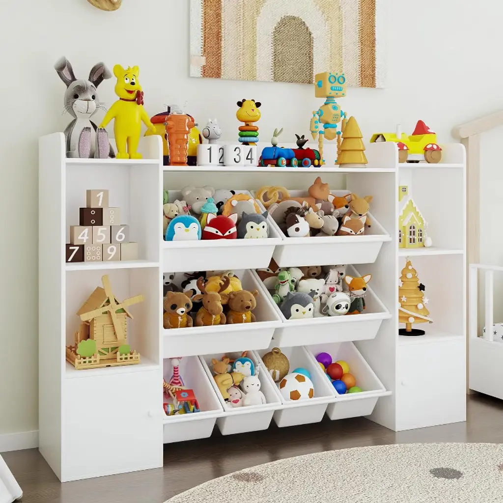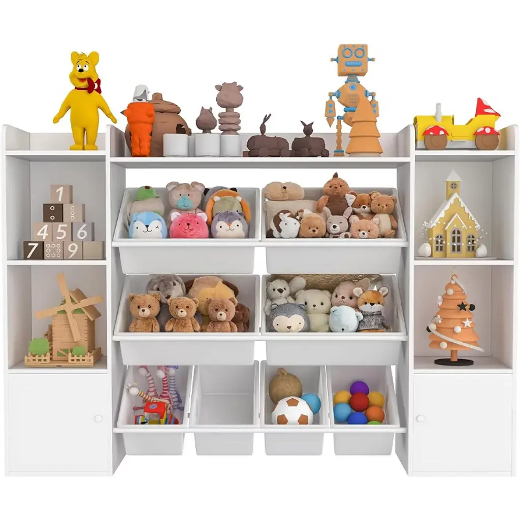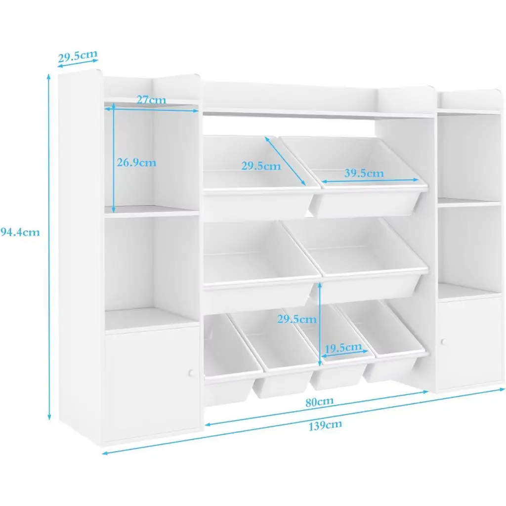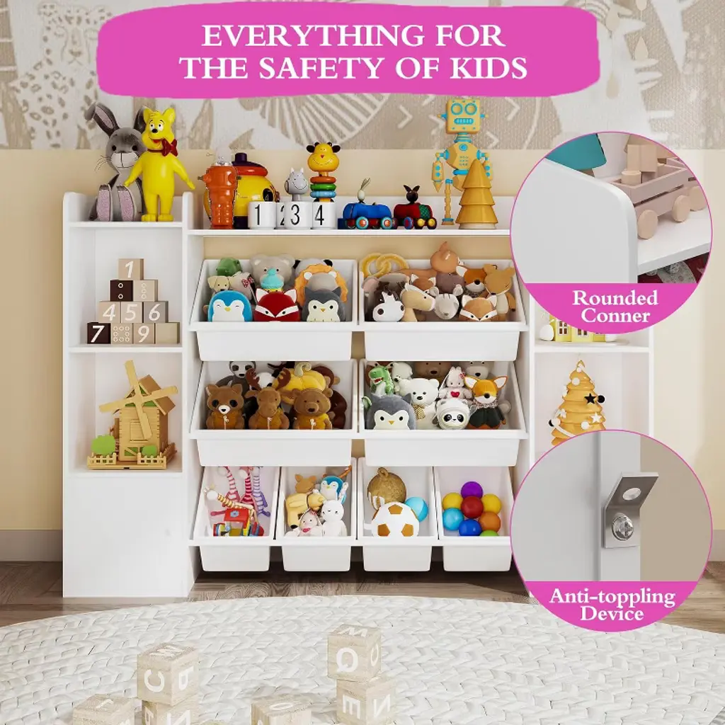 Kids Toy Storage Organizer w/8 Removable Toy Bins, Kid Bookshelf and Toy Storage w/2 Storage Cubbies Playroom Organization and Storage Bins for Playroom, Bedroom, Kids Room, Classroom