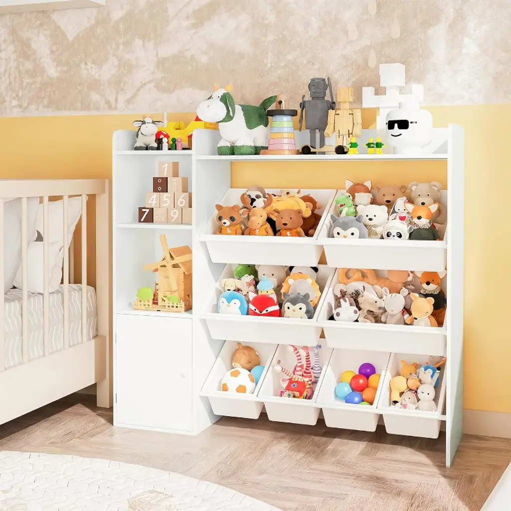 Kids Toy Storage Organizer with 8 Removable Bins Perfect Toy Storage Solution Kid Bookshelf and Toy Storage for Study Room, Bedroom, Kids Room, Classroom, Nursery