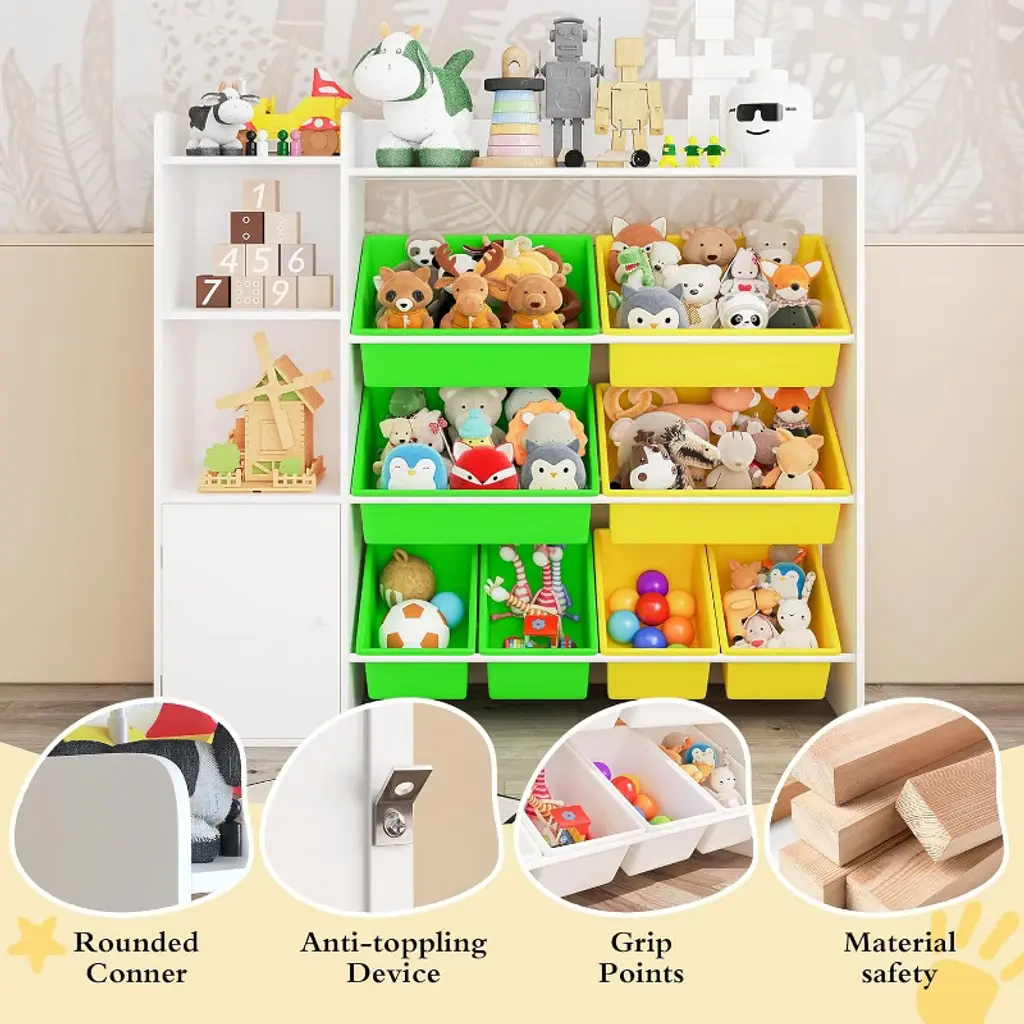 Kids Toy Storage Organizer with 8 Removable Bins Perfect Toy Storage Solution Kid Bookshelf and Toy Storage for Study Room, Bedroom, Kids Room, Classroom, Nursery