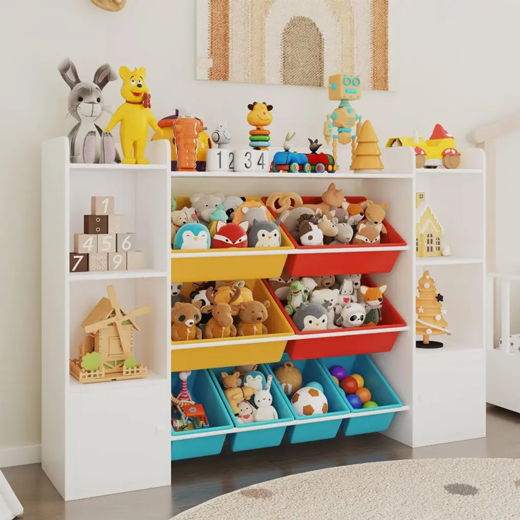 The children's toy storage rack features 3 open shelves, 8 removable storage bins, and 6 separate compartments for effortlessly organizing toys, picture books, and stationery. Its open design allows children to access items independently, helping cultivate tidying habits. The minimalist style complements various home decor aesthetics, serving as both a practical storage solution and a thoughtful holiday gift. Its crisp white finish pairs effortlessly with any decor. Installation is quick and straightforward, backed by reliable after-sales support, making it a thoughtful choice for keeping children's rooms tidy.