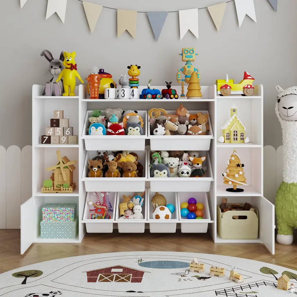 Kids Toy Storage Organizer with 8 Removable Toy Bins, 4-Tier Toy Organizers Kid Bookshelf and Toy Storage for Study Room, Bedroom, Kids Room, Classroom, Nursery