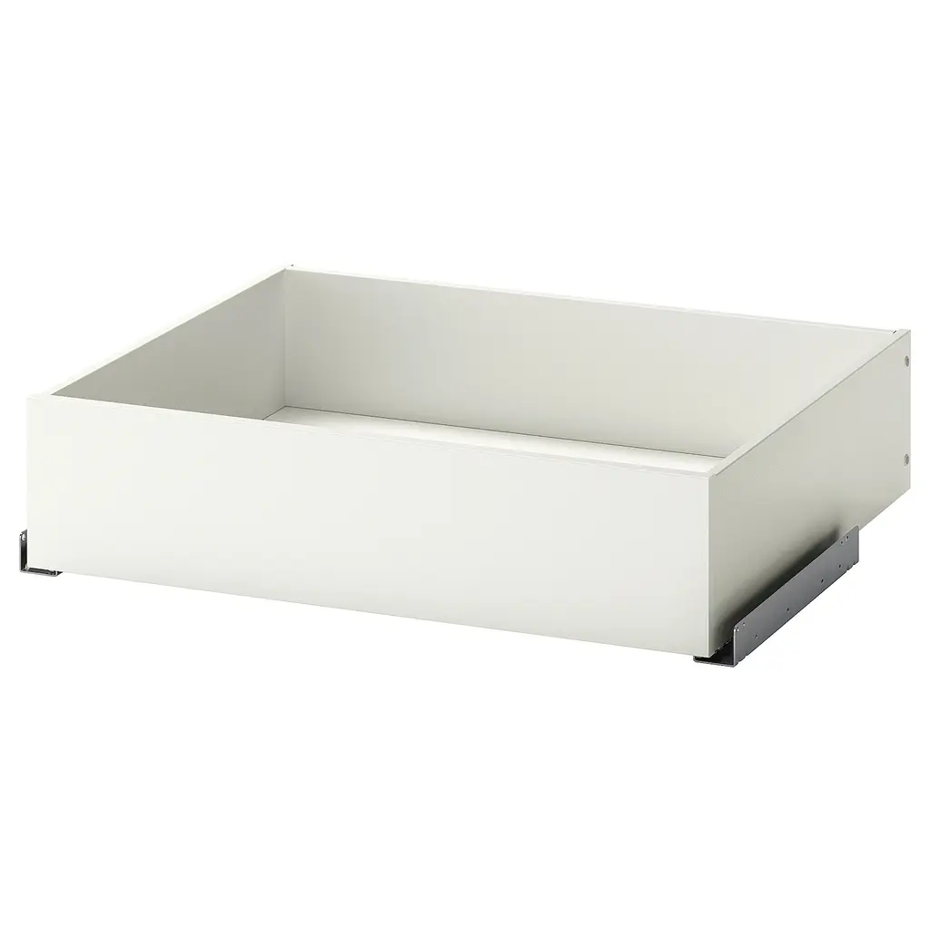 KOMPLEMENT Drawer - white 29 1/2x22 7/8 ". 10-year Limited Warranty. Read about the terms in the Limited Warranty brochure. Closes slowly, silently and softly thanks to an integrated damper. The drawer holds about 12 pairs of folded pants or 20 T-shirts. Available in different widths and depths.