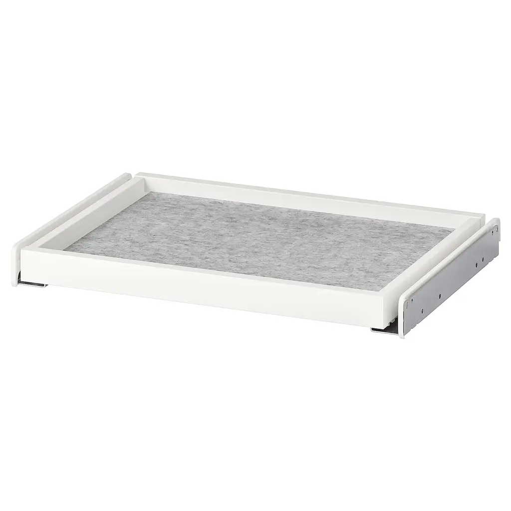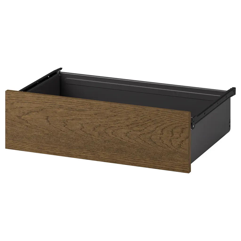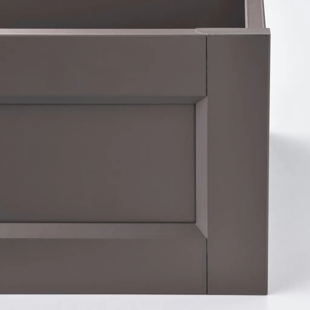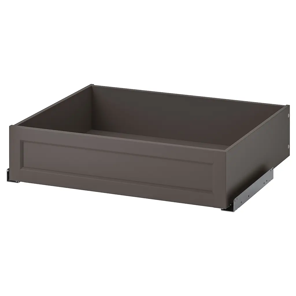 KOMPLEMENT Drawer with framed front - dark gray 29 1/2x22 7/8 ". 10-year Limited Warranty. Read about the terms in the Limited Warranty brochure. Closes slowly, silently and softly thanks to an integrated damper. The drawer holds about 12 pairs of folded pants or 20 T-shirts.