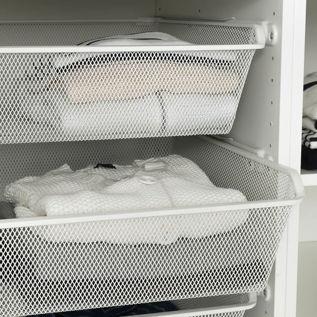 KOMPLEMENT Mesh basket - white 39 3/8x22 7/8 ". 10-year Limited Warranty. Read about the terms in the Limited Warranty brochure. The mesh basket allows air to circulate and is perfect for storing your folded clothes, socks or accessories. Available in different widths and depths.