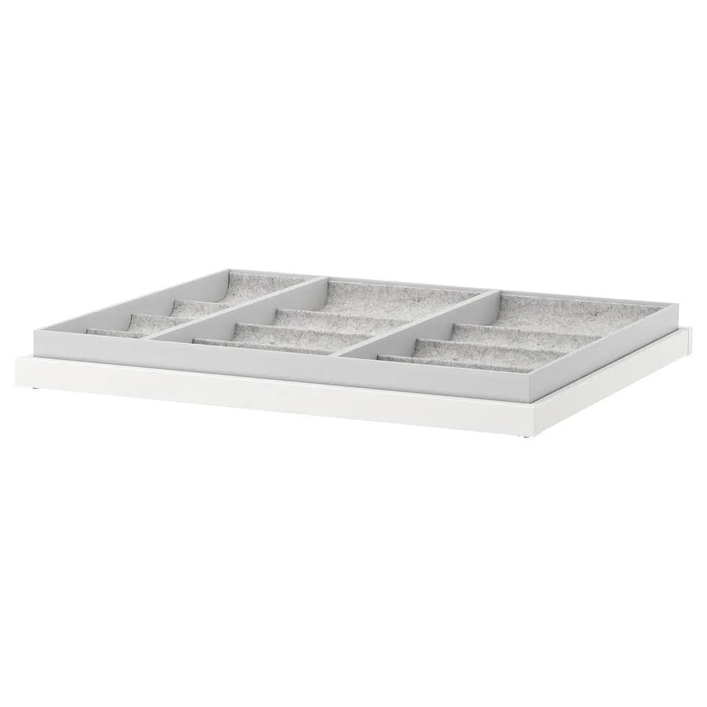 KOMPLEMENT Pull-out tray with insert - gray-beige/light gray 29 1/2x22 7/8 ". The insert helps you store and organize your sunglasses, watches and other accessories. Soft felt protects your accessories and keeps them neatly in place. You can easily see and reach your things since the tray pulls out.