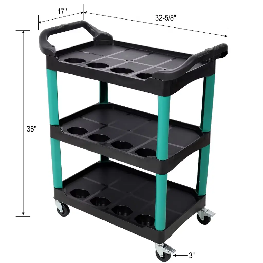Ktmbdw Auto Detailing Cart With Wheels, 3 Tier Rolling Detail Cart, Car Wash Organizer Cart For Detailers Garage, Workshop, Storage Tool, Green