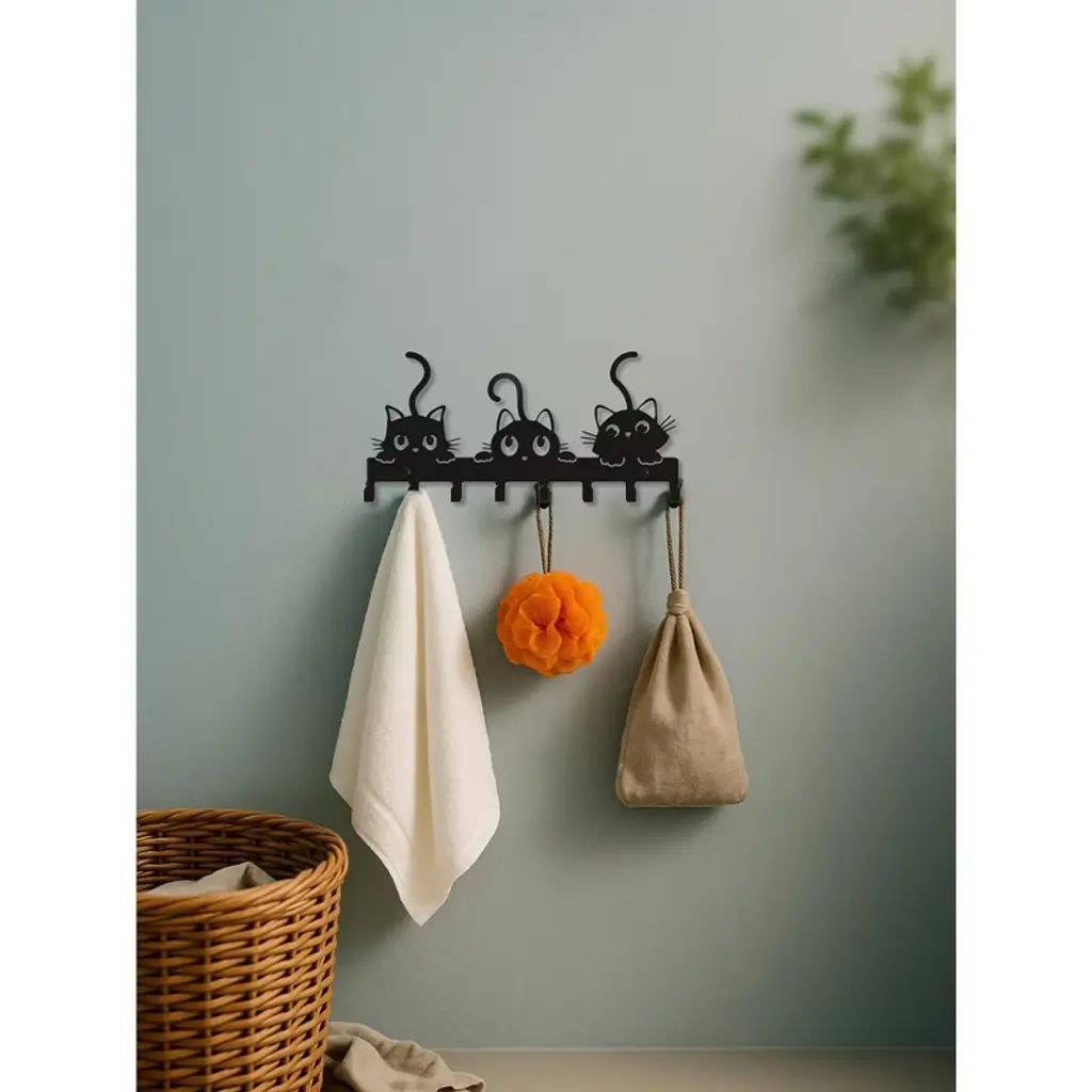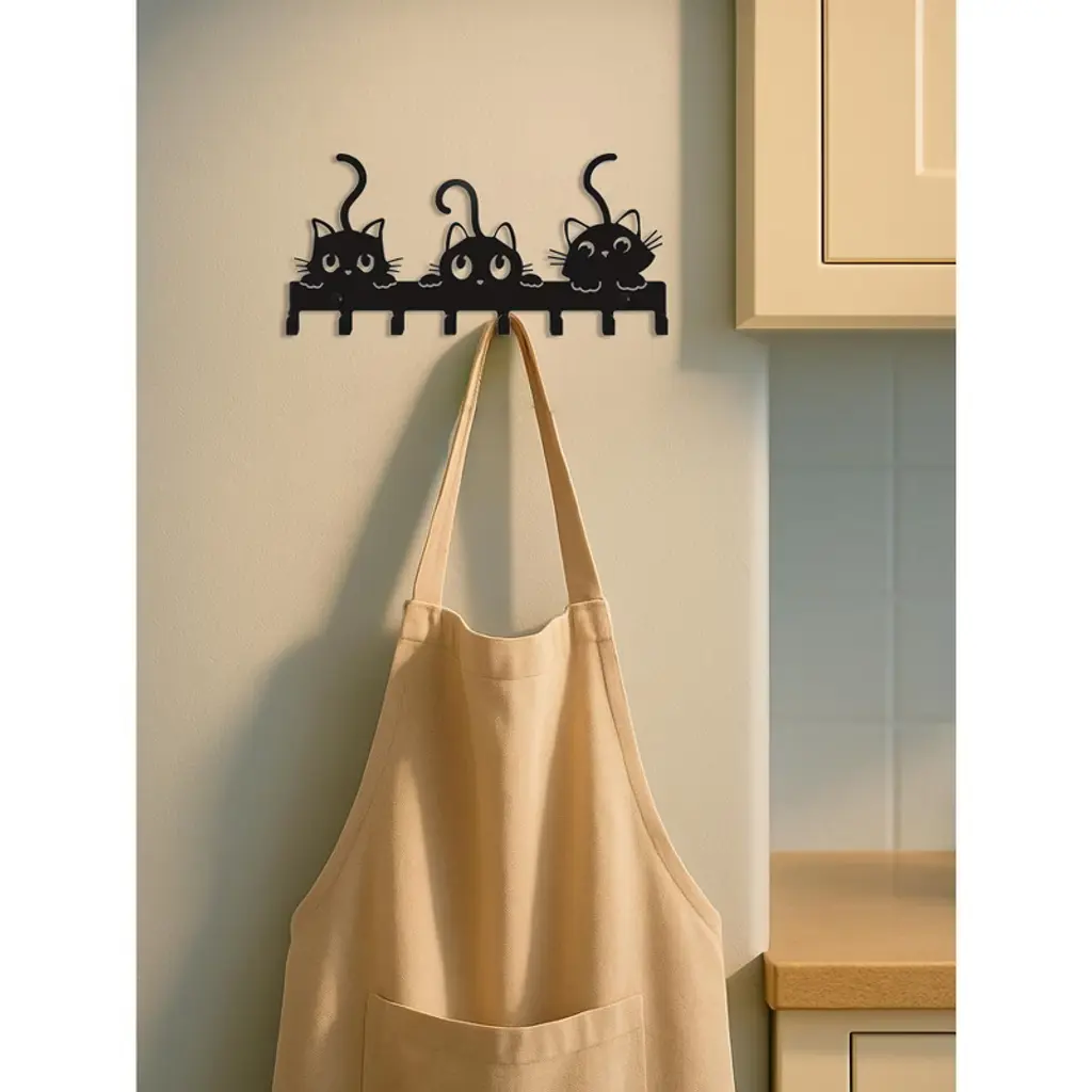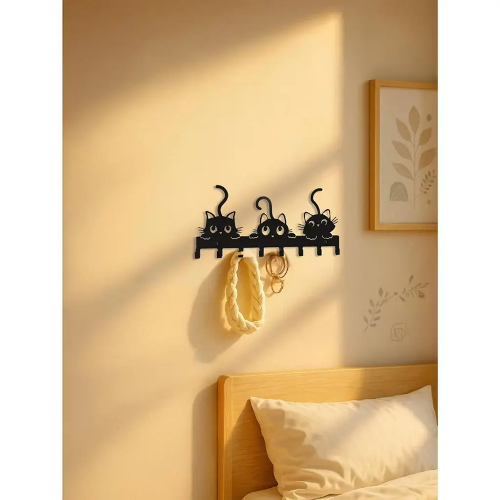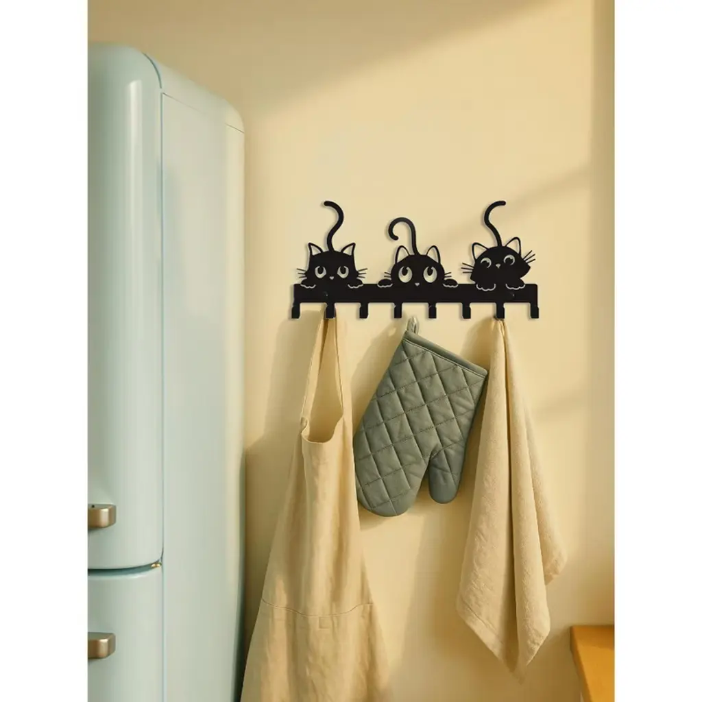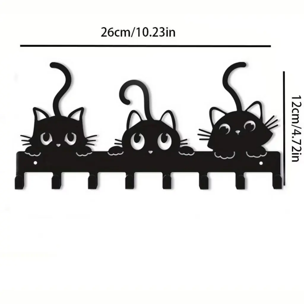 Ktmbdw Key Holder Wall Mount, Metal 8 Hooks, Keys Organizer Rack For Doorway, Decoration And Functional Items For Home Housewarming Gifts (Cats Theme)