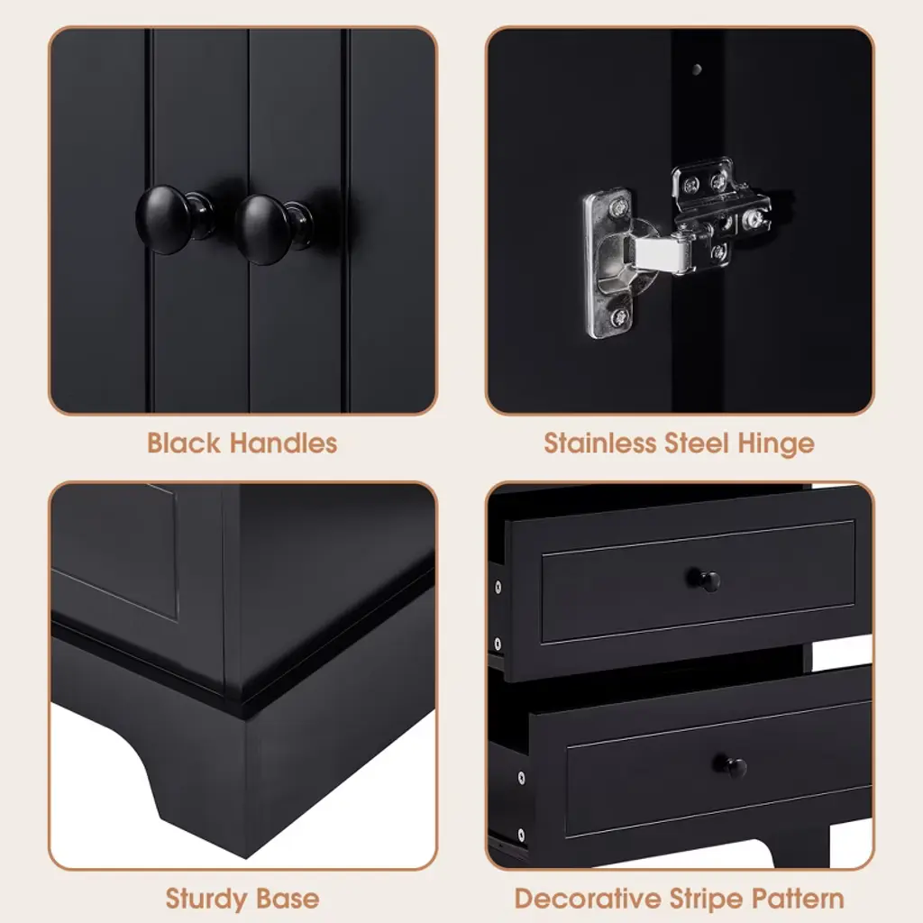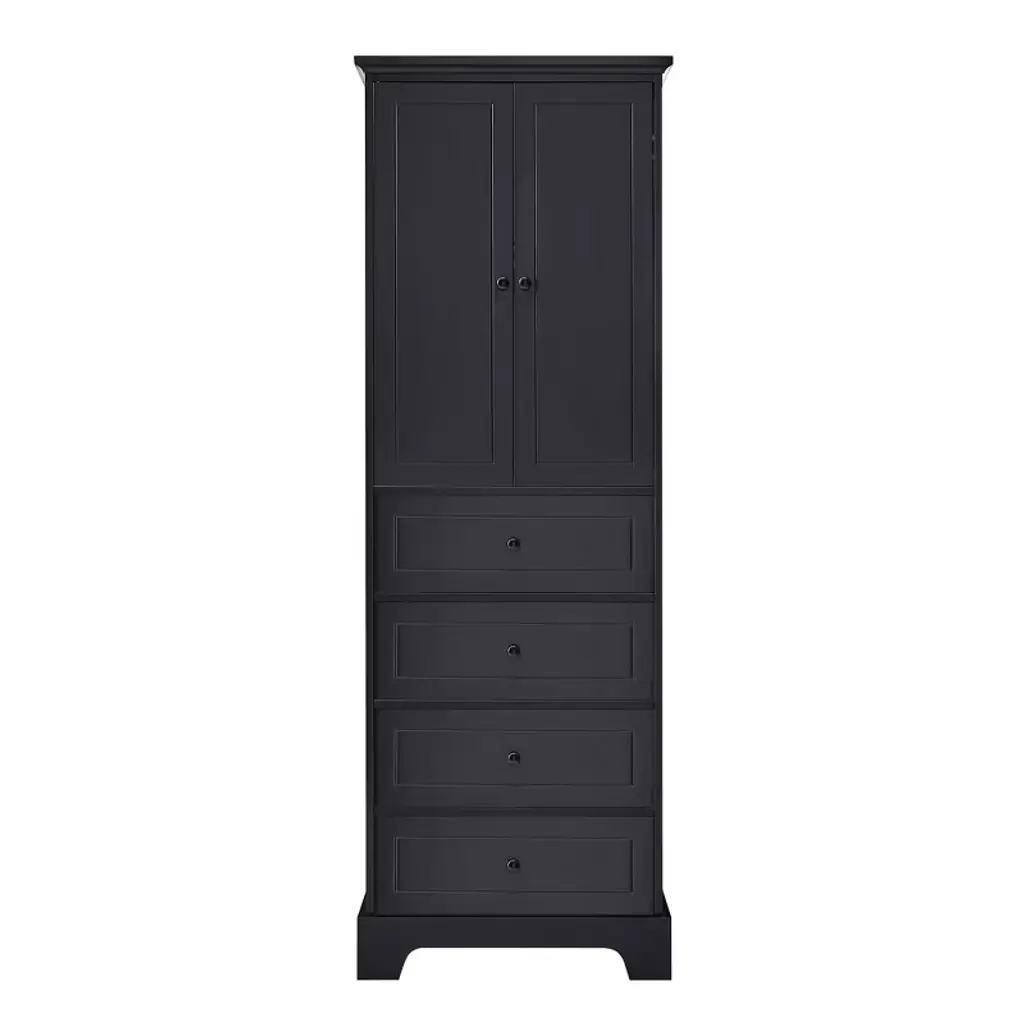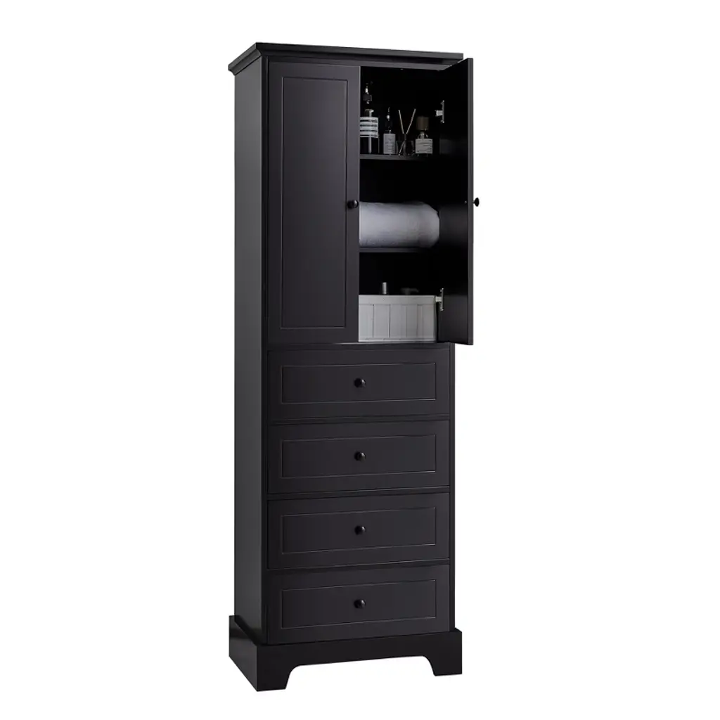 Ktmbdw Wooden Storage Cabinet, 3 Shelf Storage Organizer With 4 Drawers And Adjustable Shelves, Freestanding Storage Cabinet For Bathroom, Black