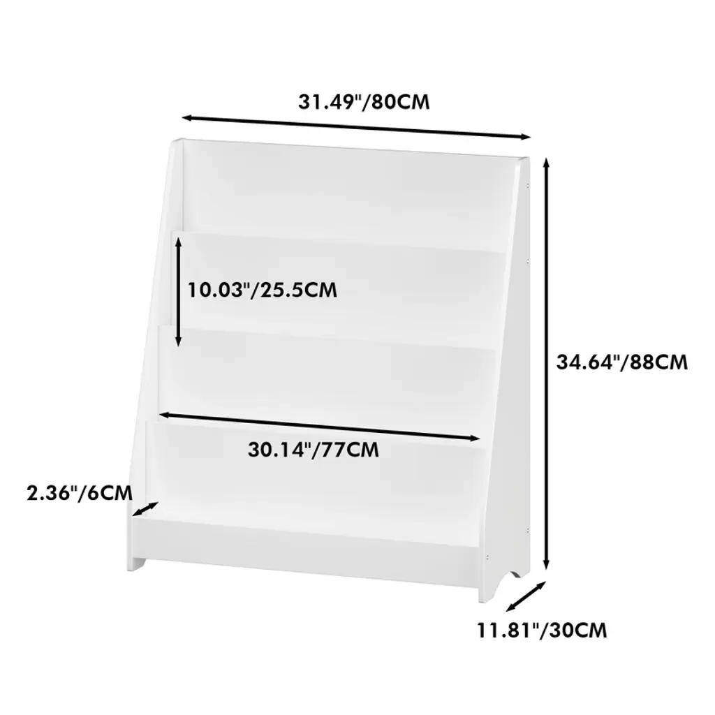 This bookshelf combines modern design with light tones for a unique and inviting feel that blends seamlessly with most home decor styles. The four-tiered bookshelf is perfect for displaying your books, CDs, magazines, video games, comics, decorative items, novels, and more. Children can easily access and grab their favorite board books from the children's bookshelf, eliminating the need to stack them on a traditional bookshelf.