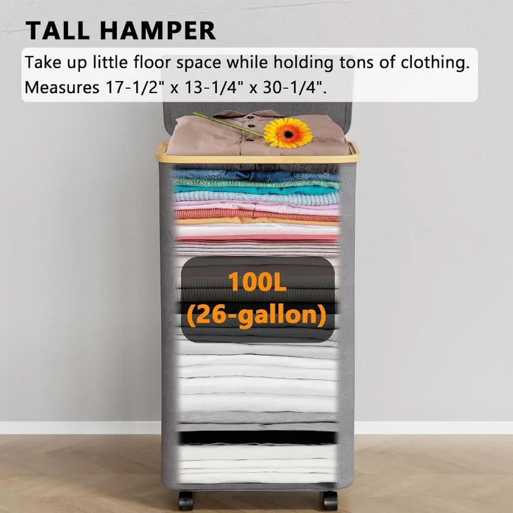 Laundry Hamper With Wheels And Lid - 100l Rolling Clothes Basket With Bamboo Handle, Spaceaid Large Laundry Organizer For Bedroom, Bathroom, Dorm