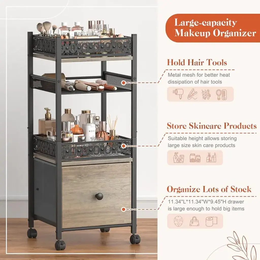 Makeup Organizer, Floor Skincare Organizers, Make Up Organizers - 12"d X 15"w X 31.5"h - More Modern Style,black