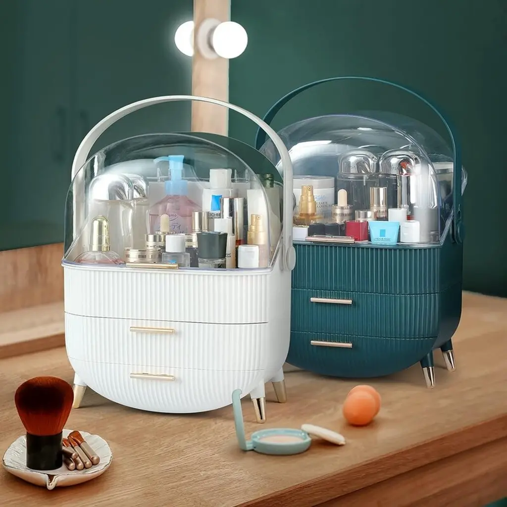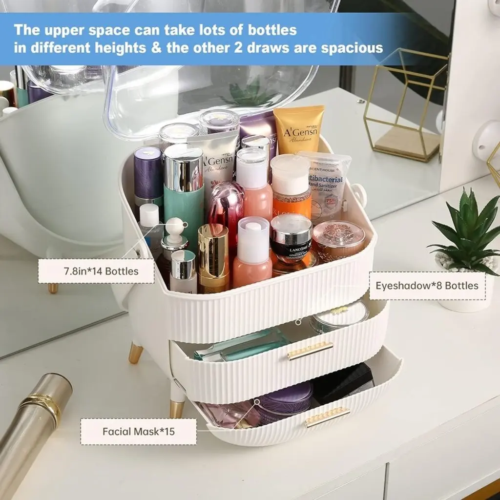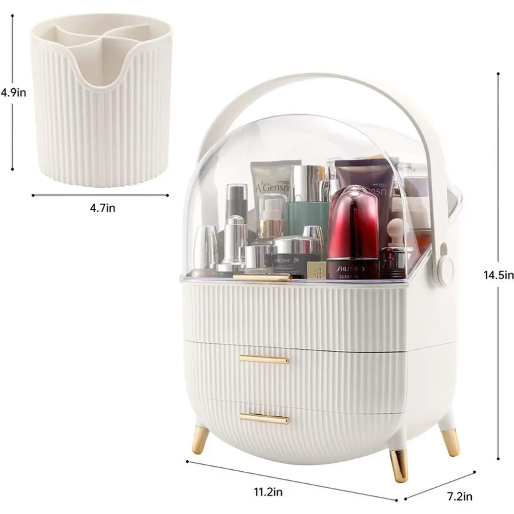 Makeup Organizer,cosmetics Display Case With 2-Layer Storage Box - 11.2*7.2*14.5in, - White A
