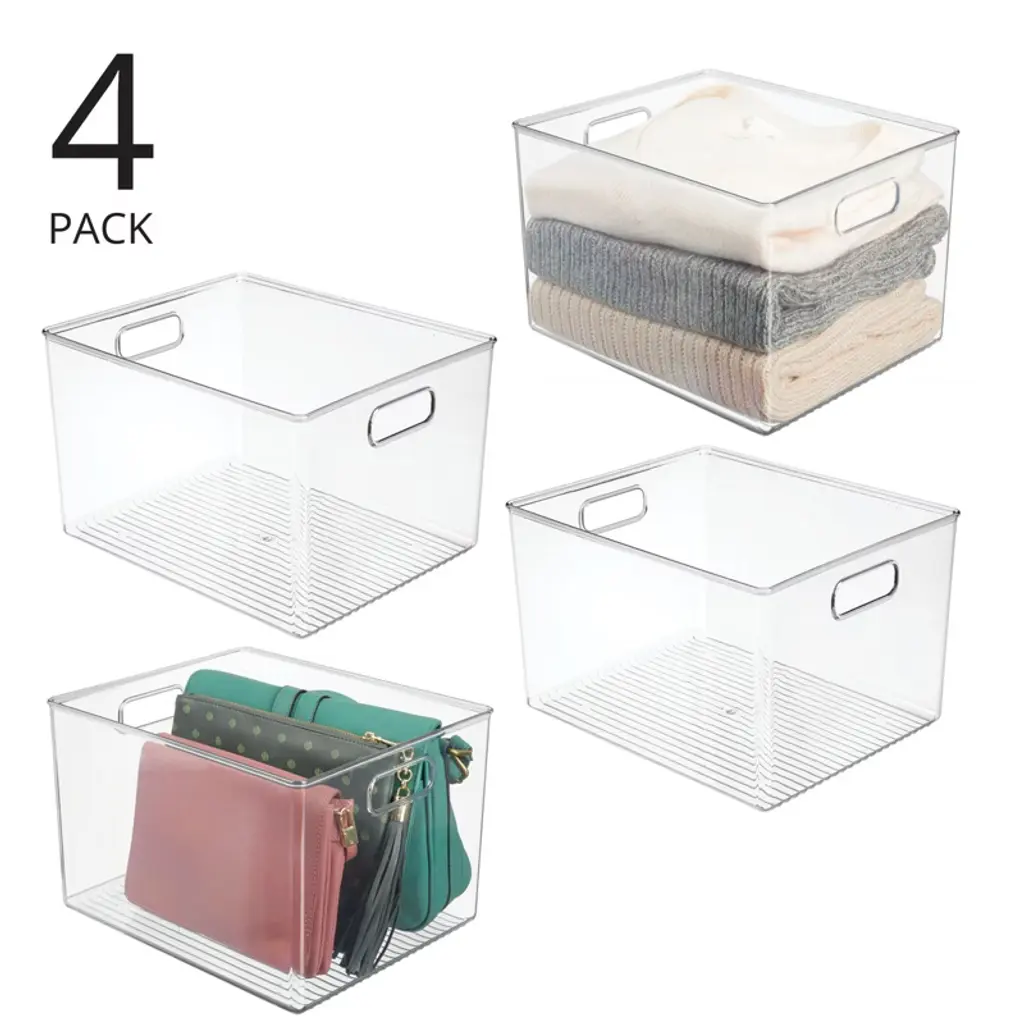 Mdesign Plastic Closet Storage Organizer Container Bin, Handles - 4 Pack - Clear, Usa Made