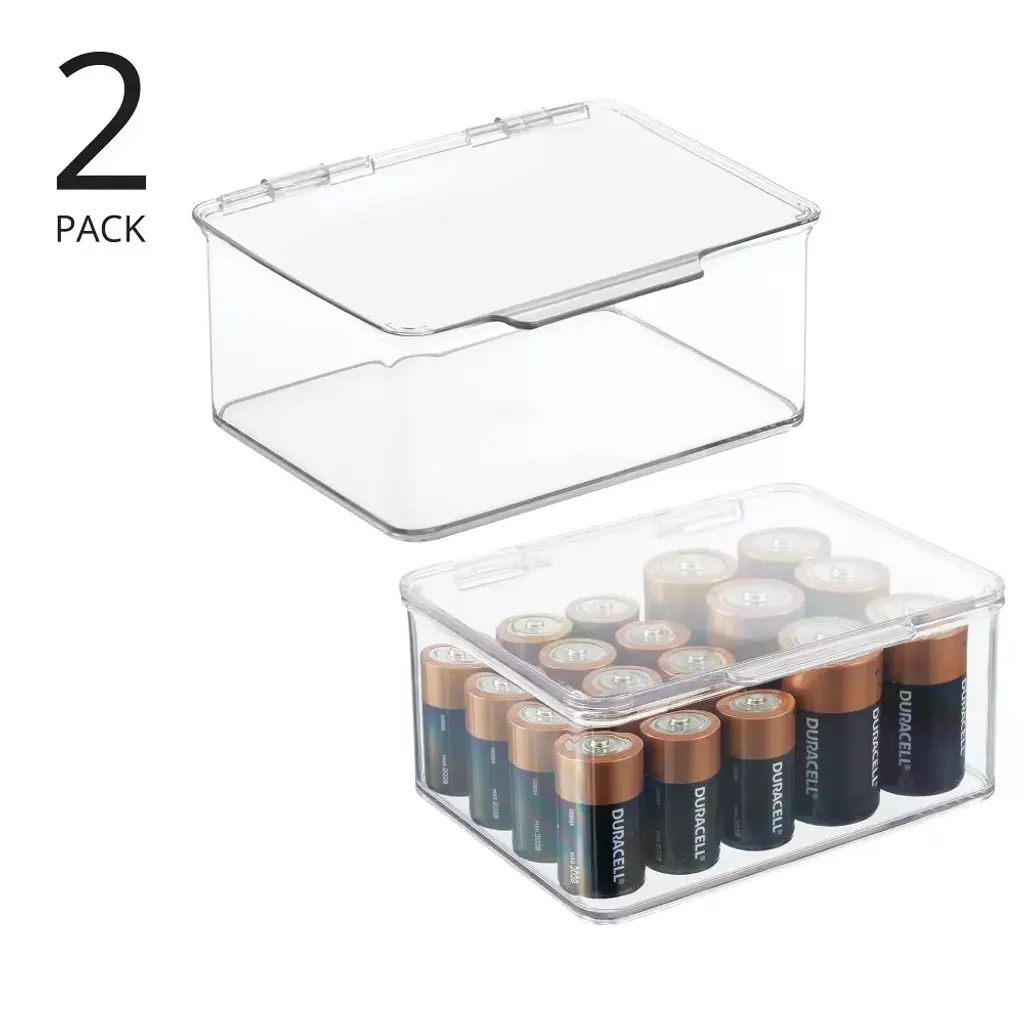 mDesign Plastic Stackable Divided Battery Storage Organizer Box, 2 Pack - Clear