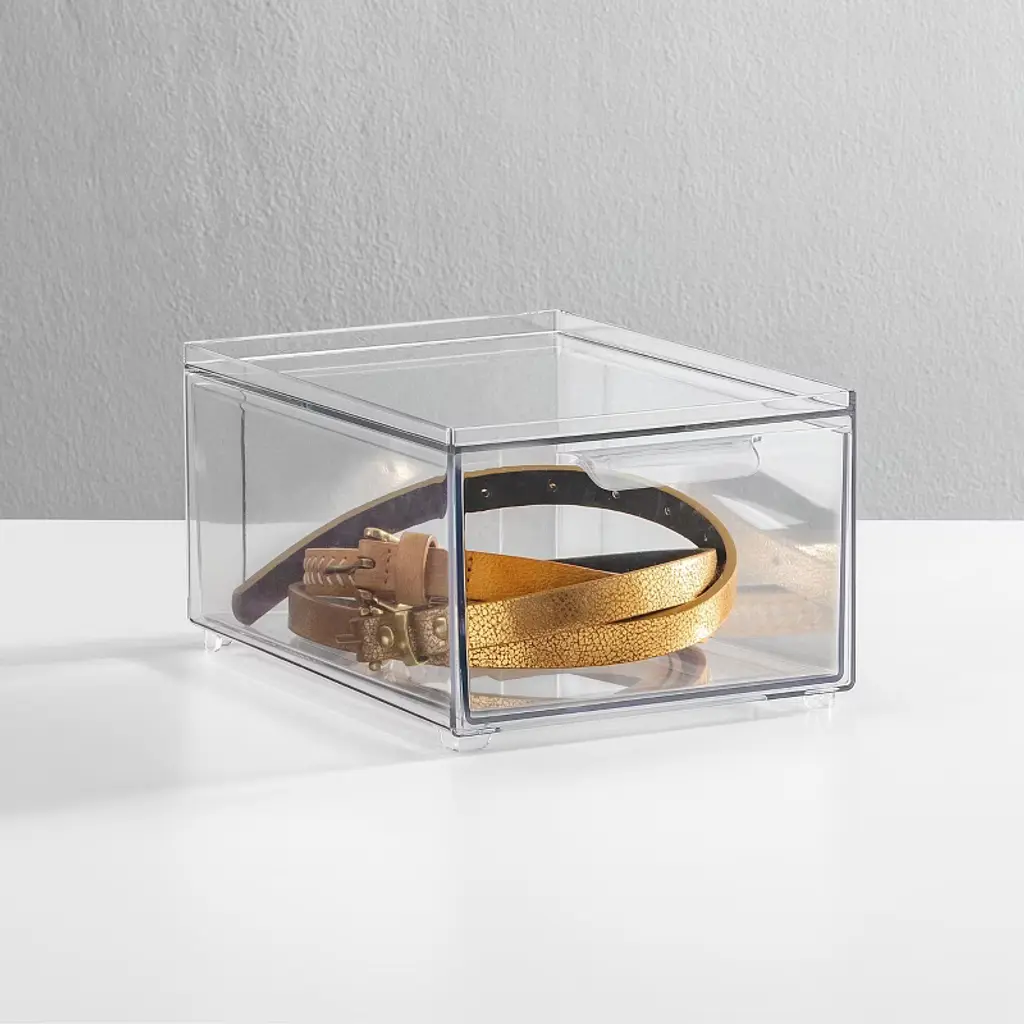 Keep closet accessories carefully stored season after season with the Stackable Closet Box with Pull-Out Drawer from mDesign