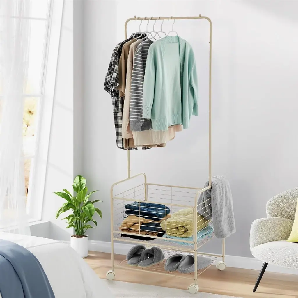 Tired of tripping over laundry piles in your 600sqft apartment? Meet your new space-saving superhero: The GarveeHome cart that turns 'Ugh, chores' into 'Heck yes, me-time!'. Designed for real-life battles - from toddler tornadoes to gym bag avalanches. Multi-Room Scenarios Beyond the laundry room: - Bathroom: Hang wet swimsuits over the tub - Nursery: Store diapers & stuffed animals - Garage: Organize car wash supplies Highlights: Easy Glide Mobility Efficient Space Saver Quick Assembly Design Durable Metal Construction Ample Storage Capacity Lockable Stability Wheels Sleek Modern Finish