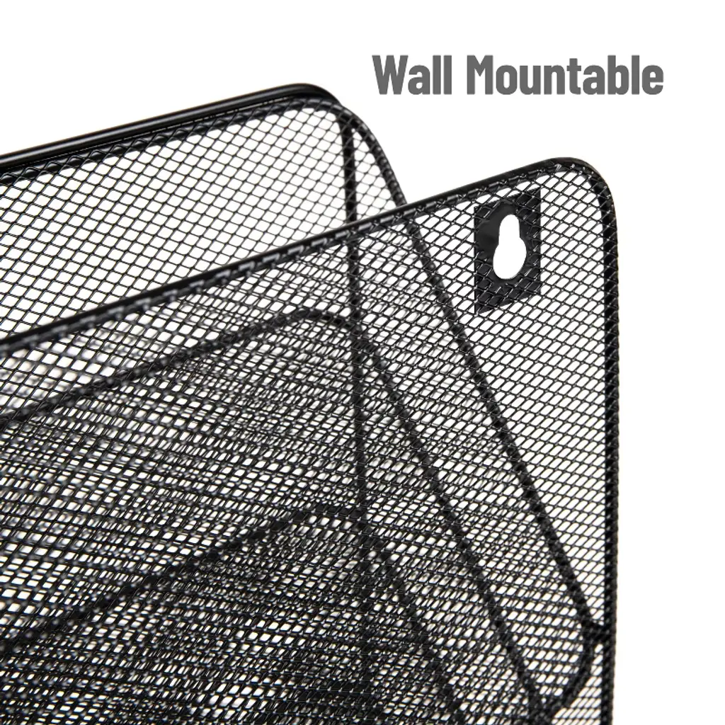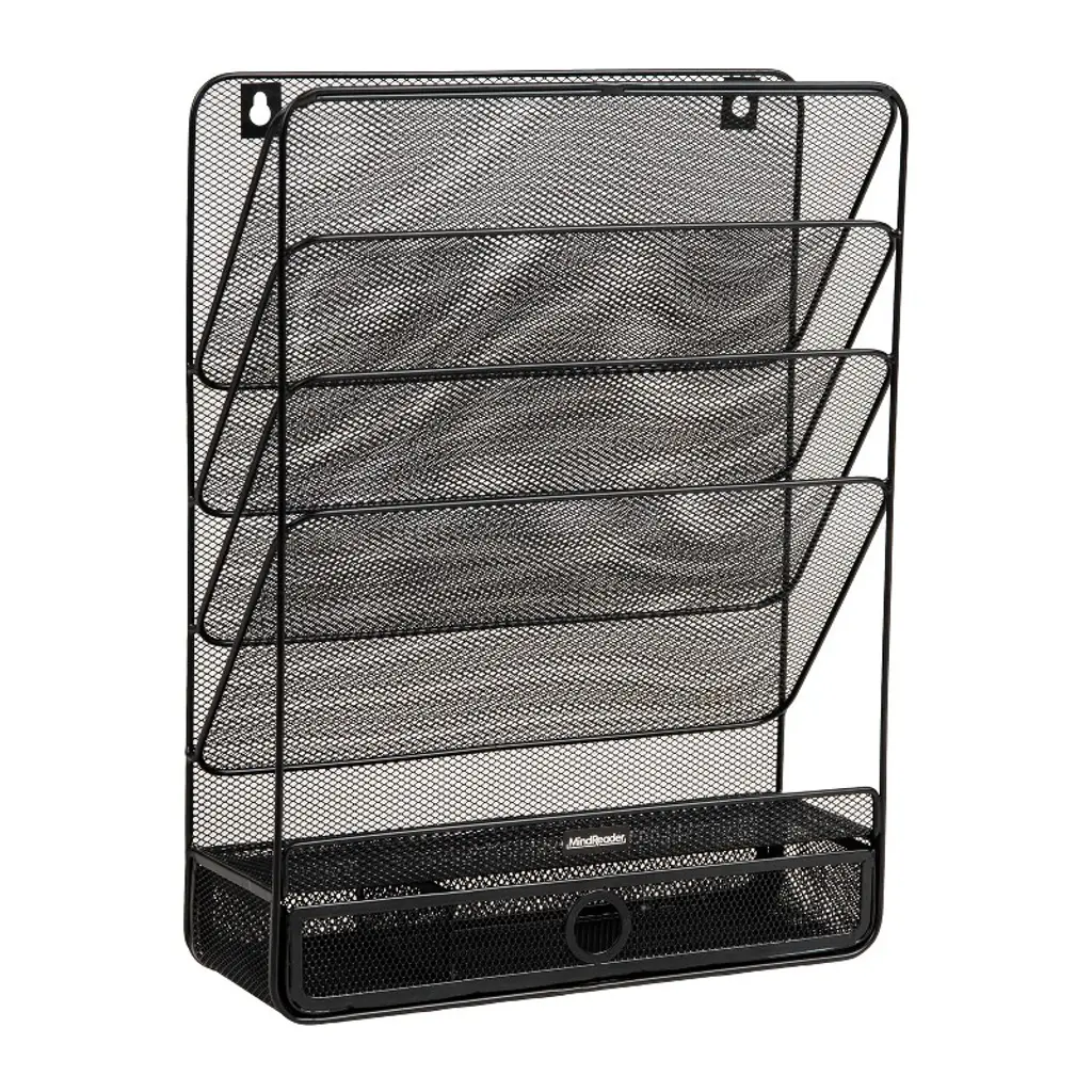 Mind Reader 4-tier Vertical File Storage, Desktop Organizer, Wall Mount, Office, Metal Mesh, 12.5"l X 4"w X 16.5"h, Black
