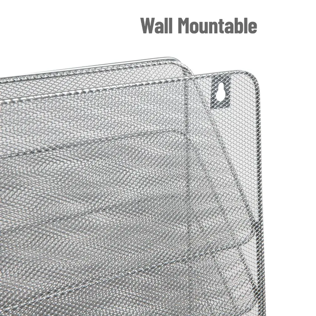 Mind Reader 4-tier Vertical File Storage, Desktop Organizer, Wall Mount, Office, Metal Mesh, 12.5"l X 4"w X 16.5"h, Silver