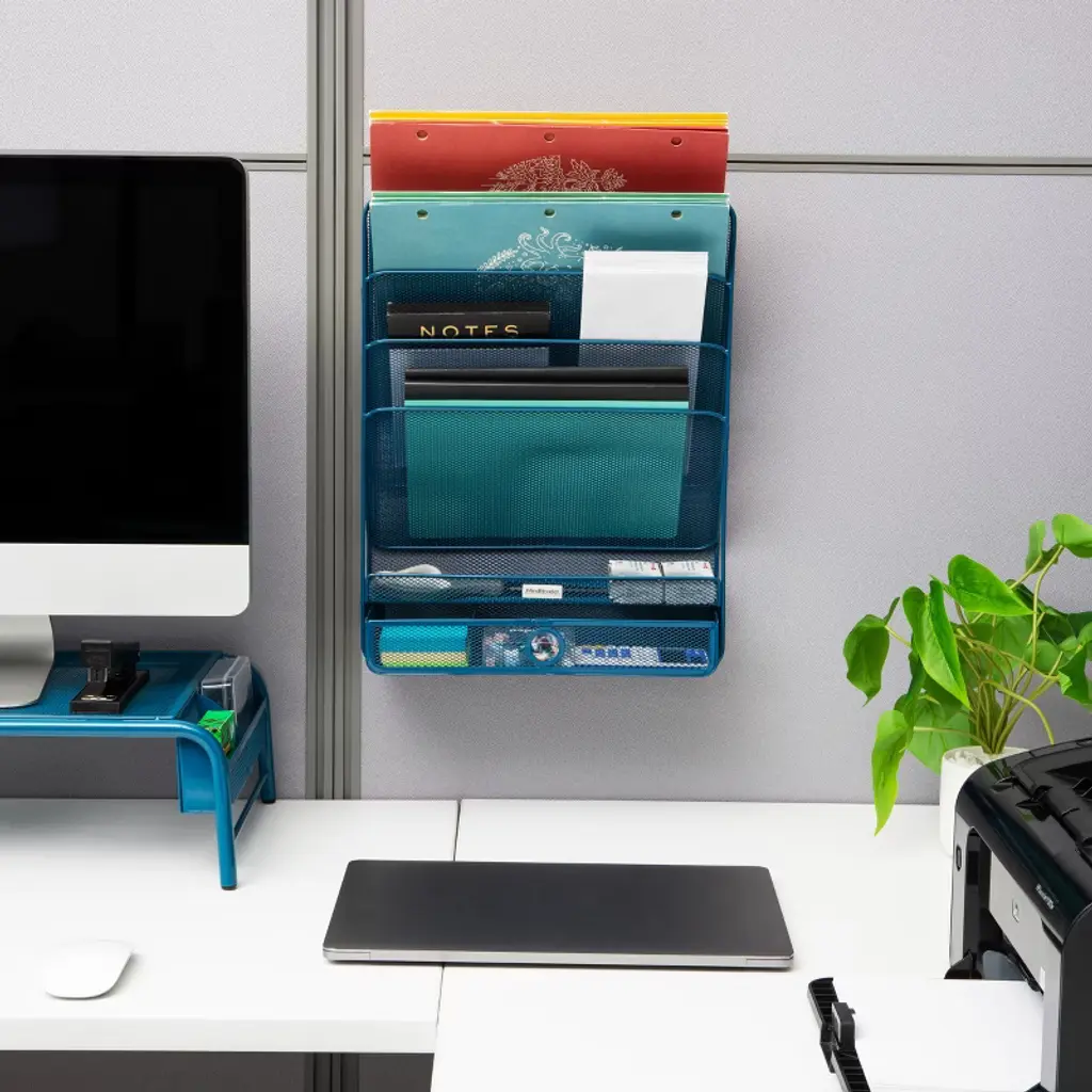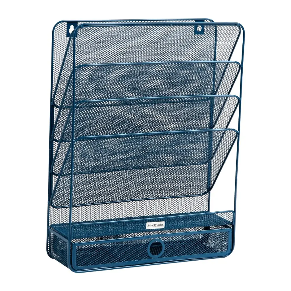 Mind Reader 4-tier Vertical File Storage, Desktop Organizer, Wall Mount, Office, Metal Mesh, 12.5"l X 4"w X 16.5"h, Turquoise