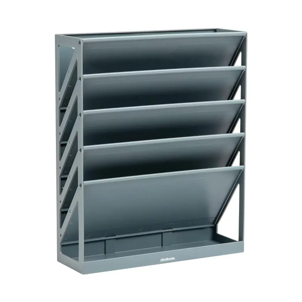 Mind Reader 5-tier Vertical File Storage, Desktop Organizer, Wall Mount, Office, Plastic, 13"l X 4.25"w X 16"h, Gray